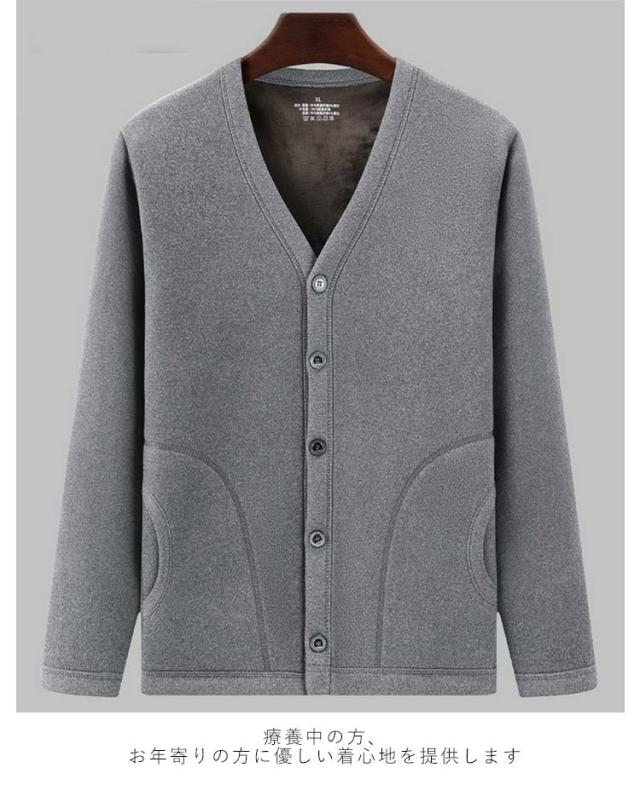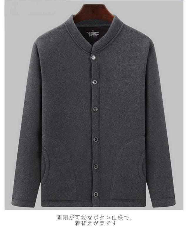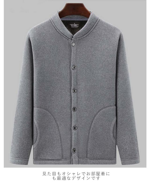 メンズ 長袖 カーディガン 前開き カーディガン ブルゾン 立ち襟 入院 裏起毛 トップス ルームウェア 無地 手術 介護用 部屋着 Vネック 大きいサイズ ポケット付き 秋冬 羽織り 防寒 保温 高齢者 暖かい