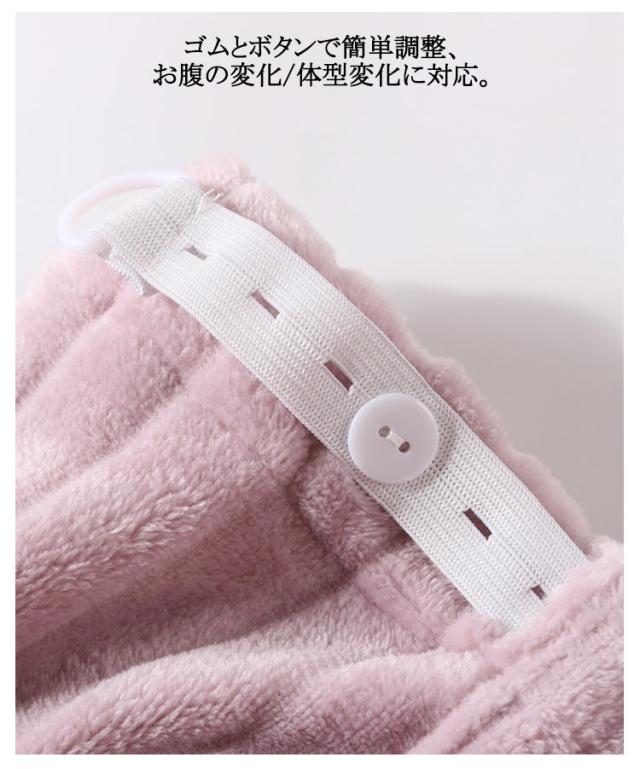 | ふわふわとした肌触りが気持ち良いマタニティルームパンツ。 ゴムとボタンで簡単調整、お腹の変化/体型変化に対応。 お腹への締め付け感がなく、苦しくない。 保温性に優れ、秋冬の冷え対策にぴったりです。 | |