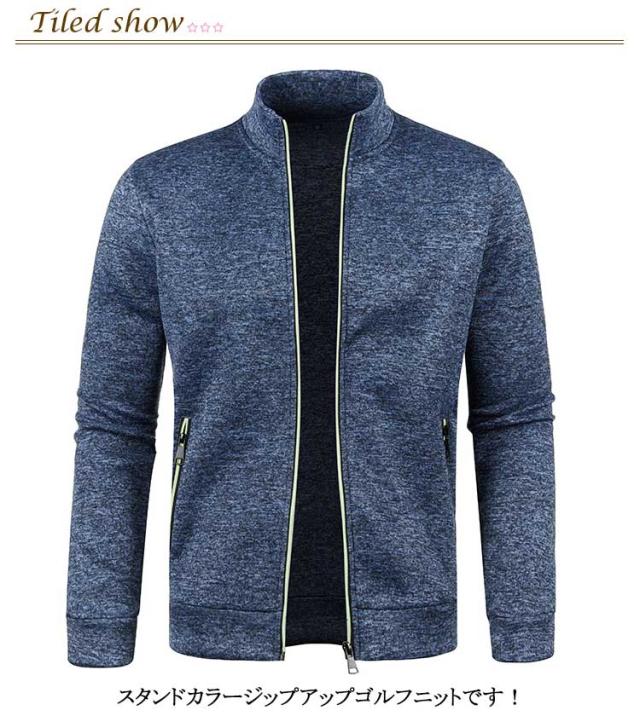 メンズ ジャケット 前開き スウェット トレーナー 冬服 ジップアップ パーカー ゴルフウェア ゴルフウェア ゴルフニット トップス アウター 春秋服 前開きニット 裏起毛 メンズ カーディガン 無地 長袖 ファスナー 春秋 秋冬 スポーツ