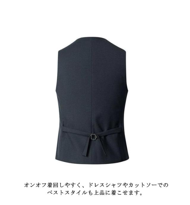 | ビジネス〜フォーマルまで着まわせるジレベストです。 シワになりにくく、通気性に優れた素材を使用しています。 4つボタンのシングルスタイルでVゾーンは少し深めに設計。 オンオフ着回しやすく、ドレスシャツやカットソーでのベストスタイルも上品に着こせます。 ビジネスやフォーマル、結婚式、入社式、入学式、成人式、卒業式、通勤、新生活、披露宴など場合に最適。 父の日、誕生日、バレンタインなどのプレゼントにもおすすめです。 | |