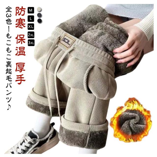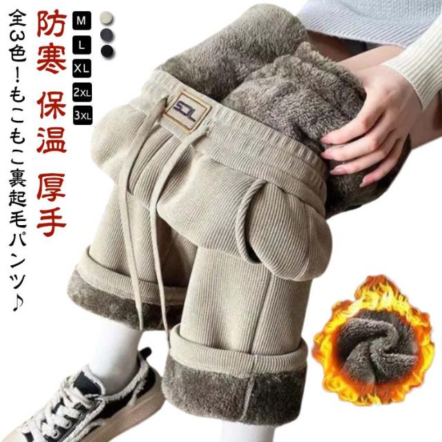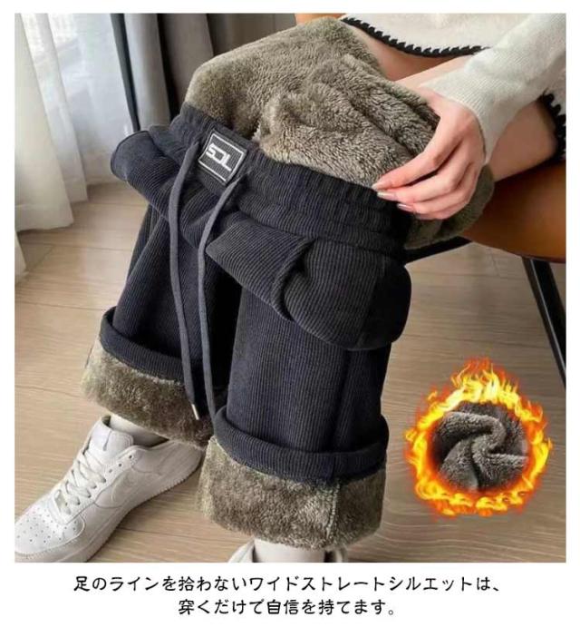 秋 裏起毛 防寒 裏ボア レディース あったかパンツ ワイドパンツ 体型カバー ロングパンツ 長ズボン ウエストゴム ボトムス 冬 コーデユロイ 裏起毛 保温 厚手 カジュアル 通勤