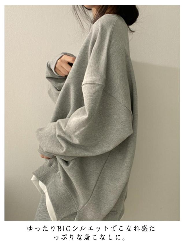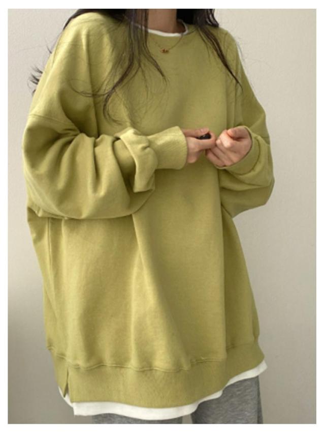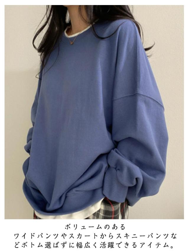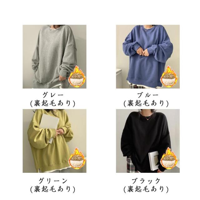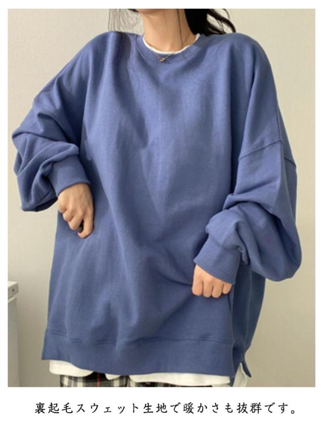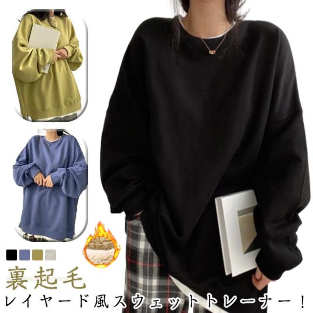 裏起毛 トレーナー スウェット トップス レディース 長袖 プルオーバー 裏起毛 あったか 防寒 レイヤード風 重ね着風 ゆったり オーバーサイズ ビッグシルエット 体型カバー カジュアル シンプル 秋冬 春 秋 冬