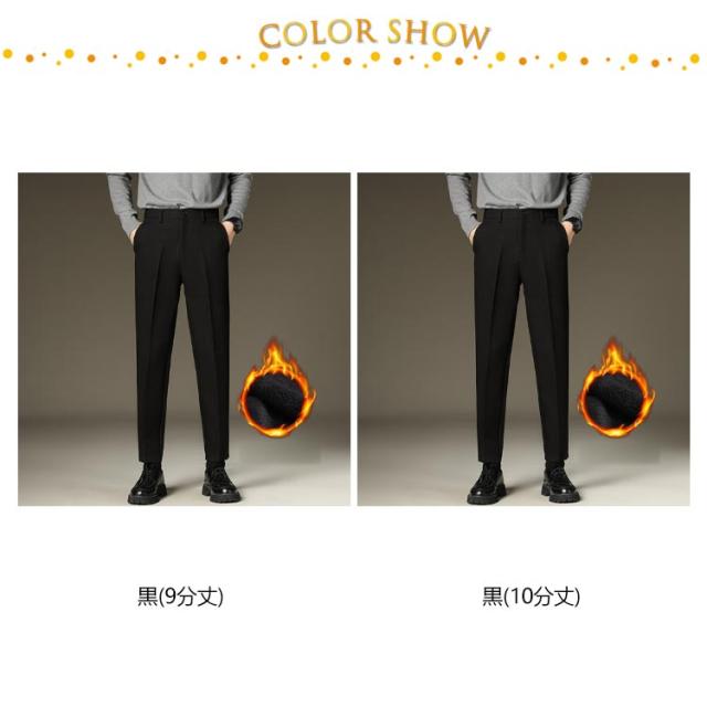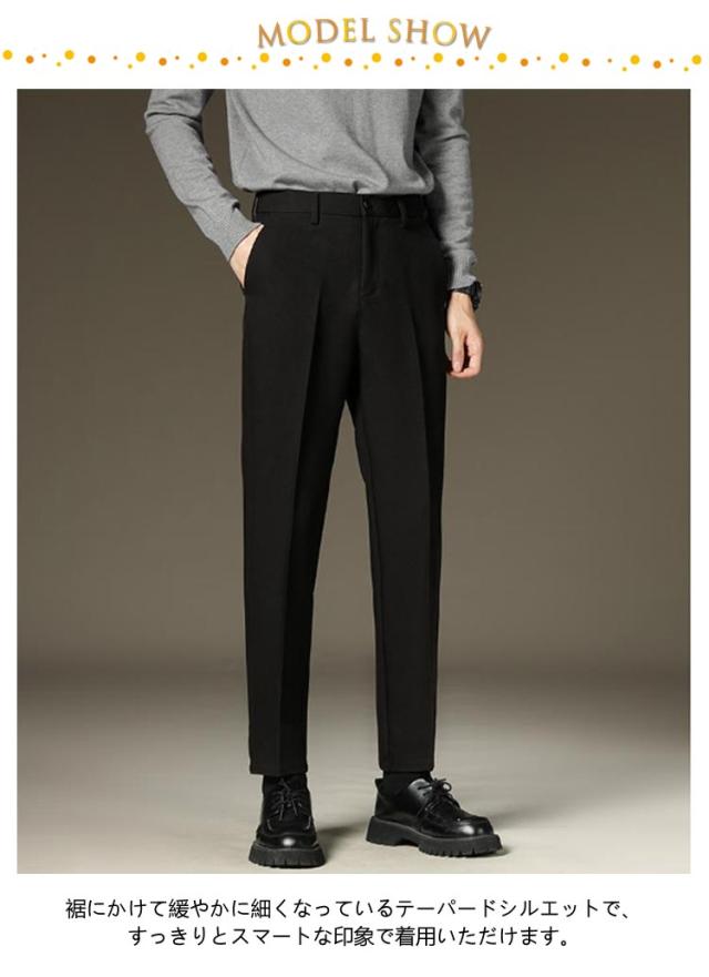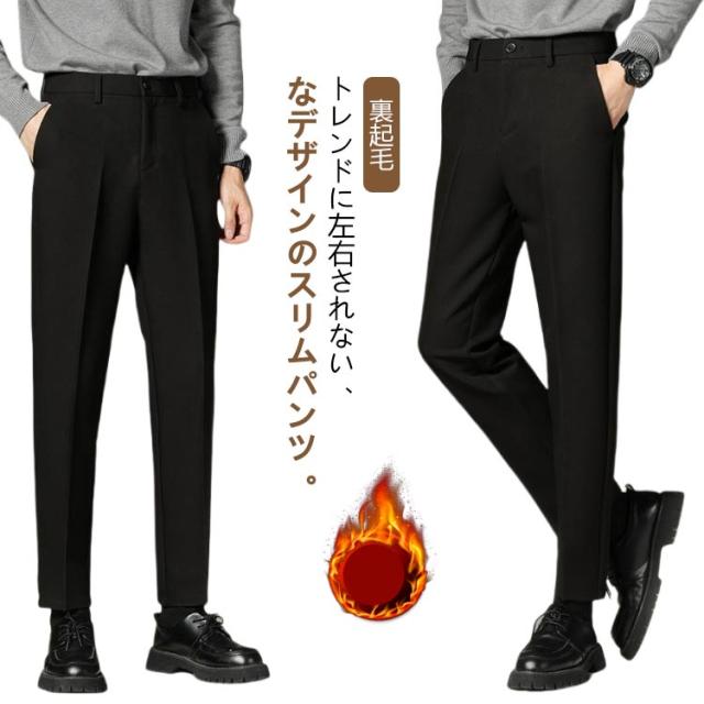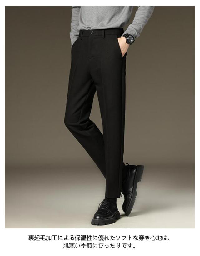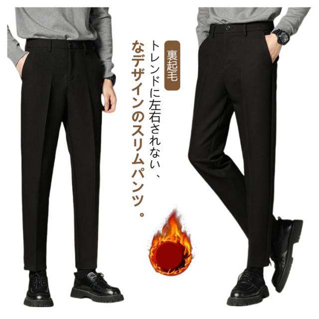 暖かい カジュアル スーツパンツ 秋冬 裏起毛 スリム ストレッチ ハイウエスト 冬用 テーパード カジュアルパンツ 防寒 保温 紳士 スラックス カジュアル 暖パン 大きいサイズ センタープレス ビジカジ 通勤 ズボン 裏起毛パンツ 9分丈 10分丈 黒