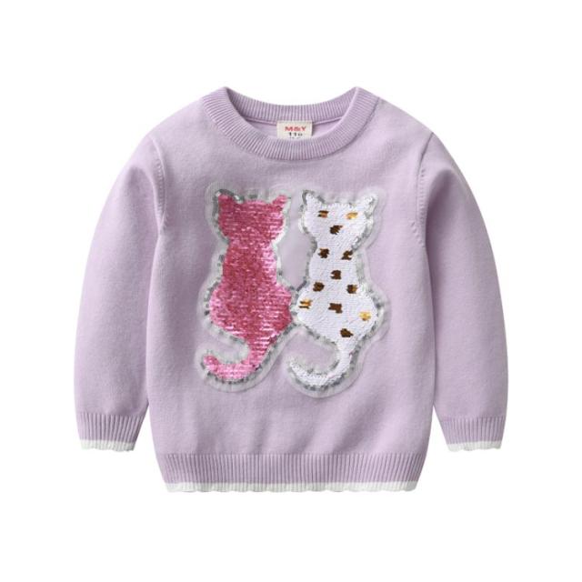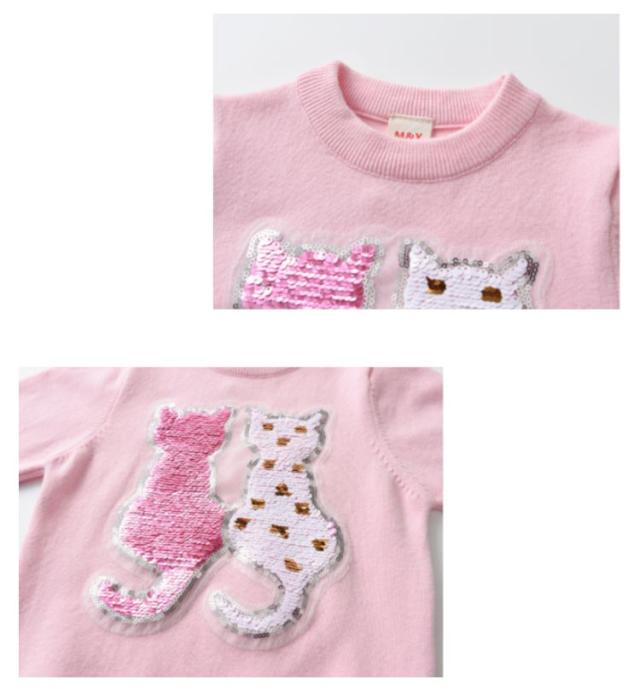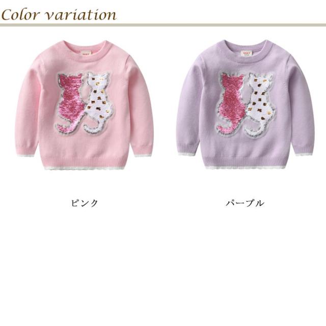 送料無料 ニット スパンコール 110cm クリスマス 長袖 ニットトップス キッズ 春 猫 こども服 子ども服 変色 子供服 無地 秋 120cm ピンク 100cm 女の子 スウェット 130cm 140cm 通園 通学 冬 プレゼント 送料無料 パープル 紫 猫 暖かい プレゼント