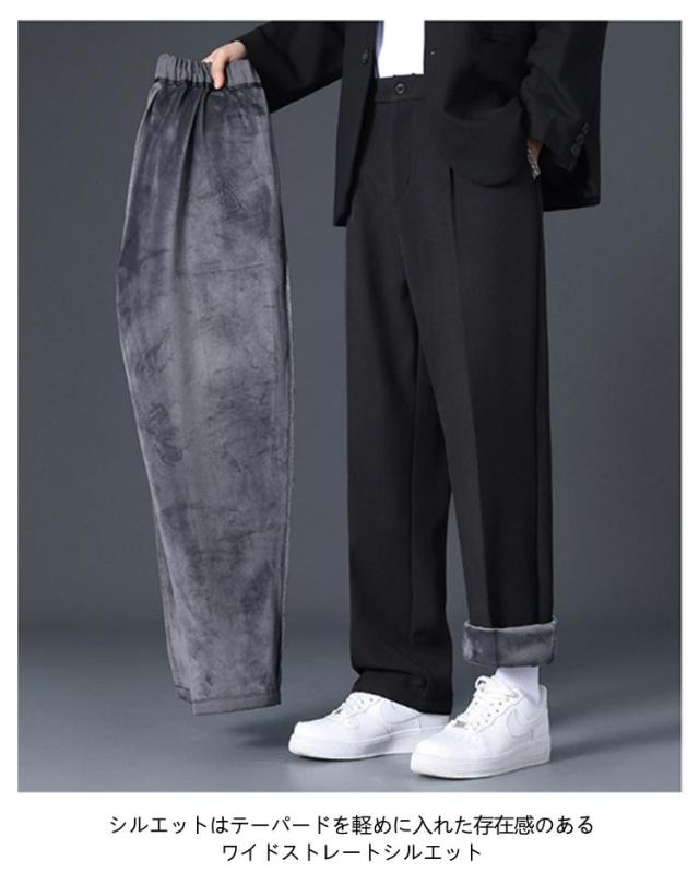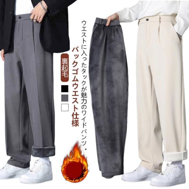 カジュアルパンツ センタープレス ワンタック 裏起毛 カジュアル スーツパンツ スラックス 秋冬 暖かい メンズ ハイウエスト 冬用 防寒 保温 ストレート 暖パン ワイド 後ろゴムウエスト 大きいサイズ 紳士 ビジカジ 通勤 ズボン 裏起毛パンツ 白 黒
