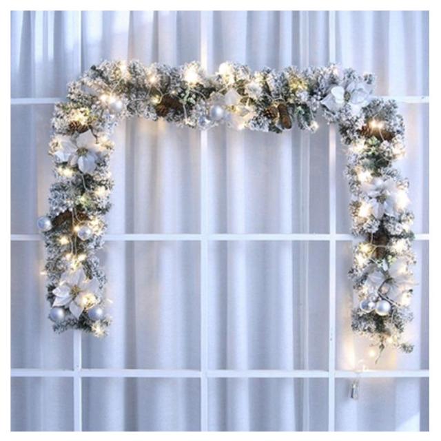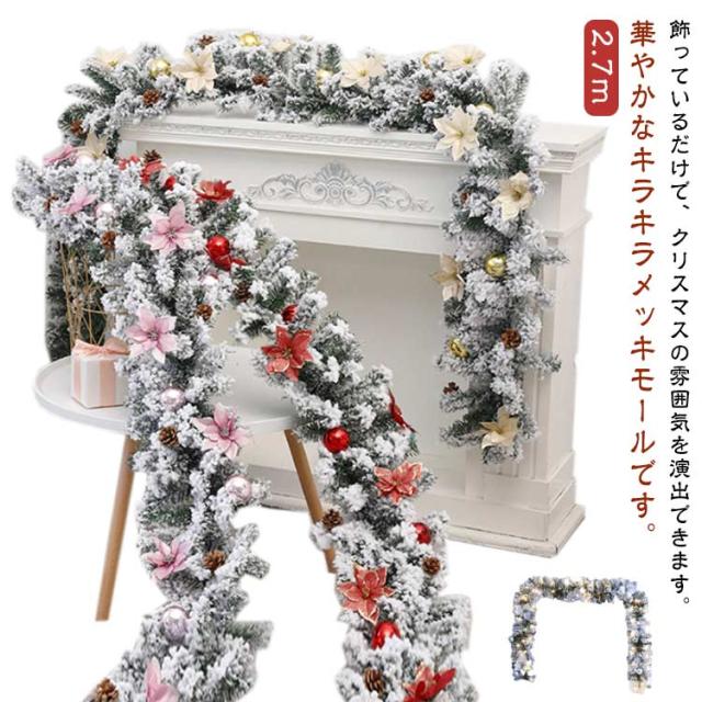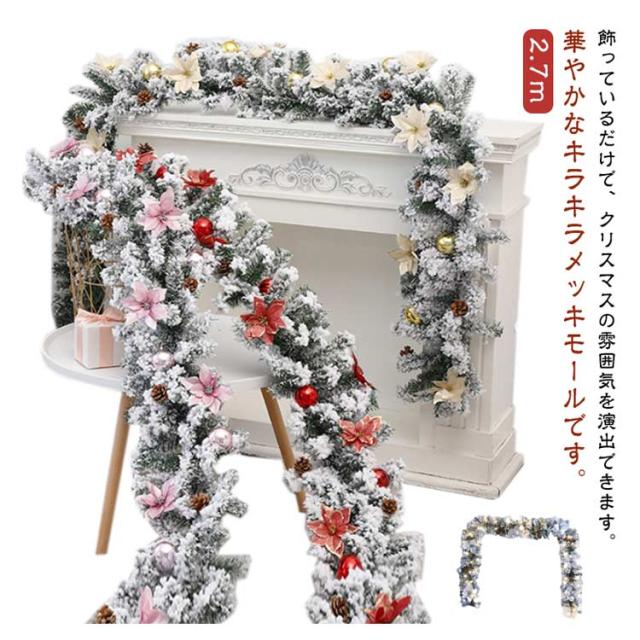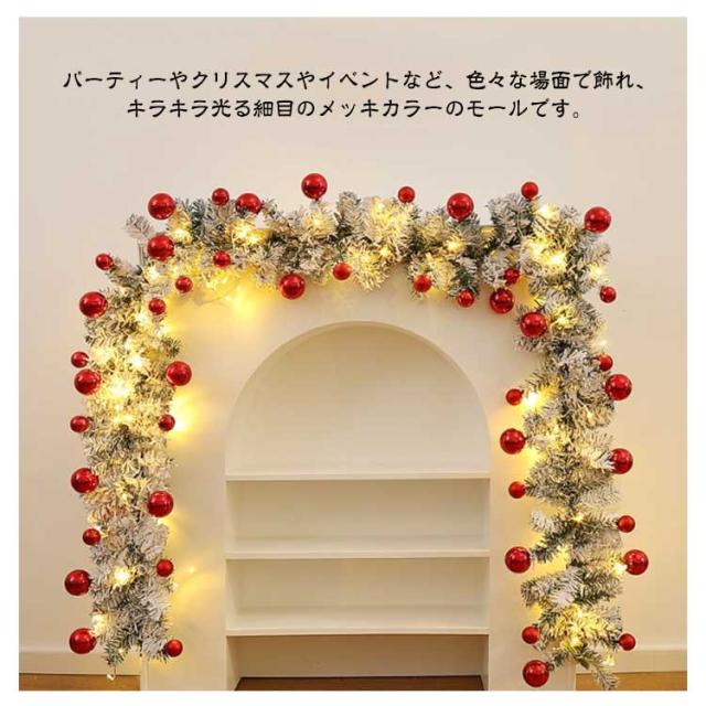 ガーランド オーナメント 飾り クリスマス クリスマスリース メッキモール キラキラガーランド デコレーションモール モール ライト付き 窓 松の葉モール 装飾籐 クリスマス 壁掛け 玄関 ドア クリスマスツリー 部屋 パーティー デコレーション