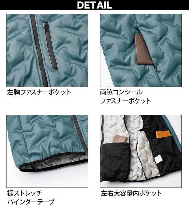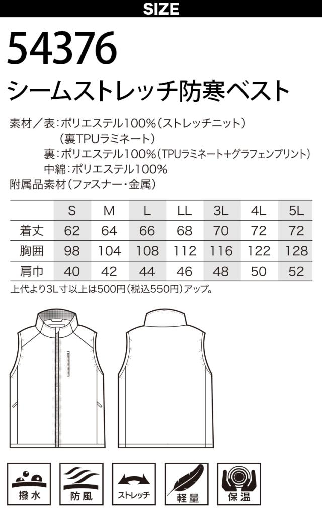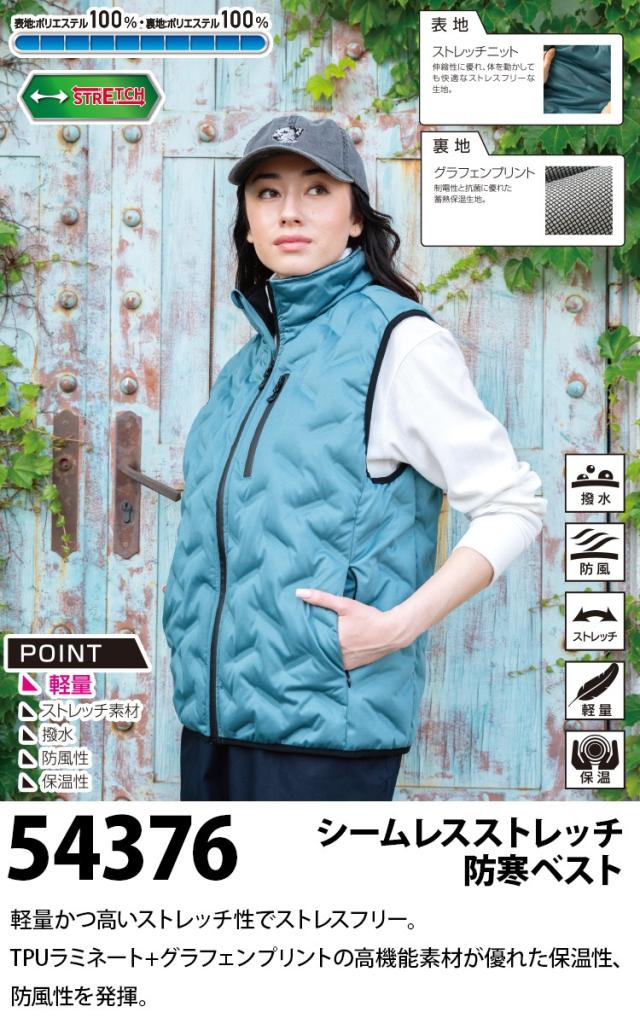 クロダルマ 54376 シームレスストレッチ防寒ベスト 秋冬軽防寒ベスト 軽量 ストレッチ 撥水 防風 保温 裏地蓄熱保温生地 作業服 作業着 アウトドア 防寒インナー