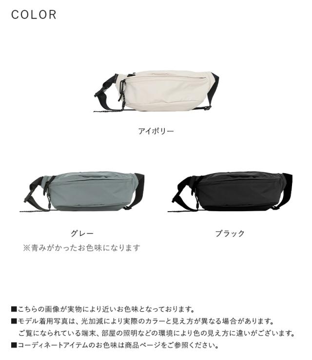 - 黒購入しました。ボディバッグの余裕のある大きさに中々出会わないですがこれは沢山入ります。外ポケットが2箇所あるのでスマホを入れられるのが良かったです。中にもオープンポケット2箇所ありますがチャックのポケットが有ればもっと良かったと個人的には思いました。全体的には満足したバッグです。