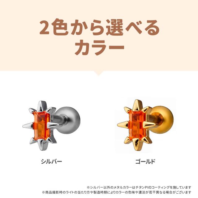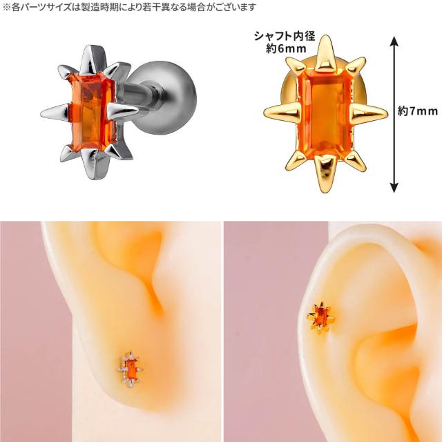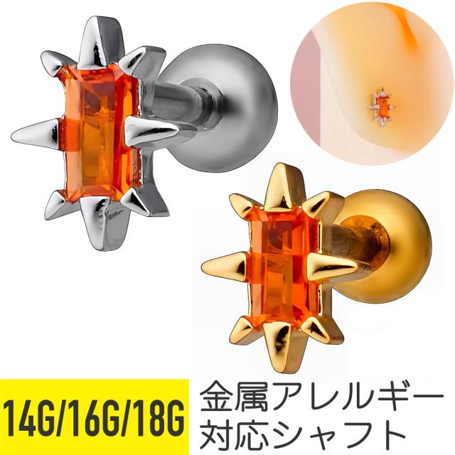 スパイク トゲトゲ スクエア ジュエル ストレートバーベル 14G 16G 18G サージカルステンレス ジルコニア ヘリックス 軟骨 ボディピアス