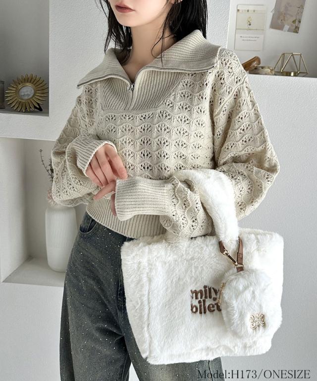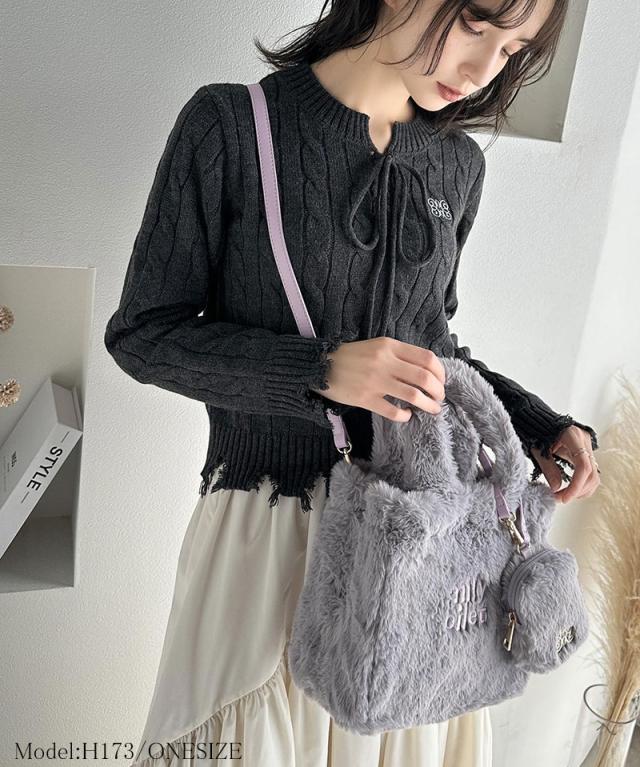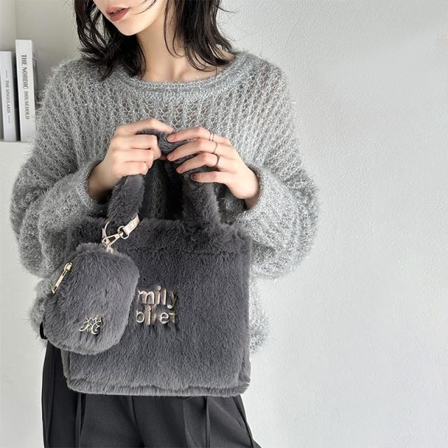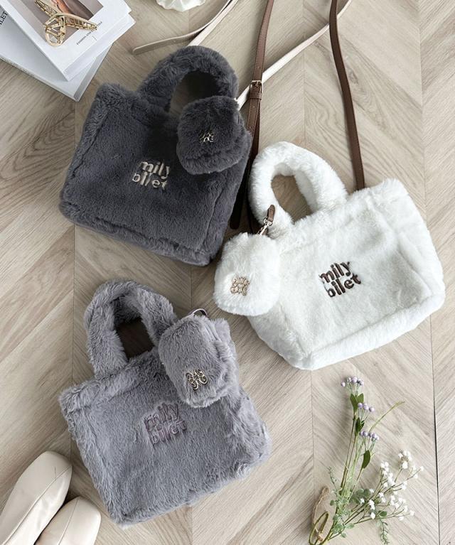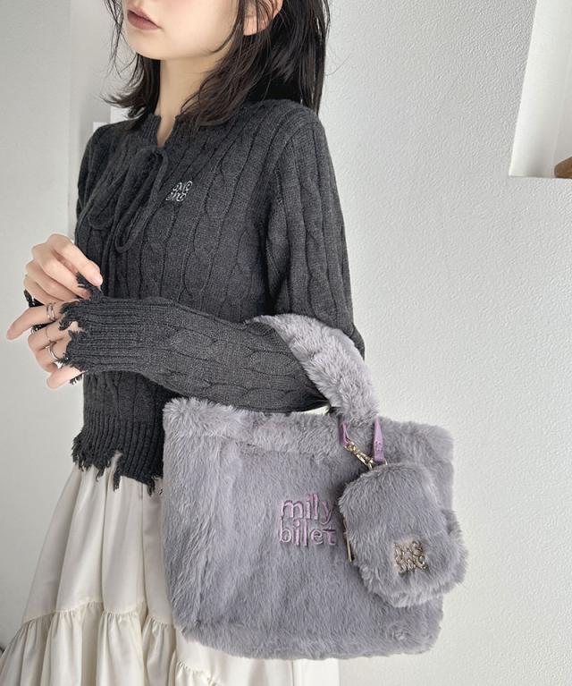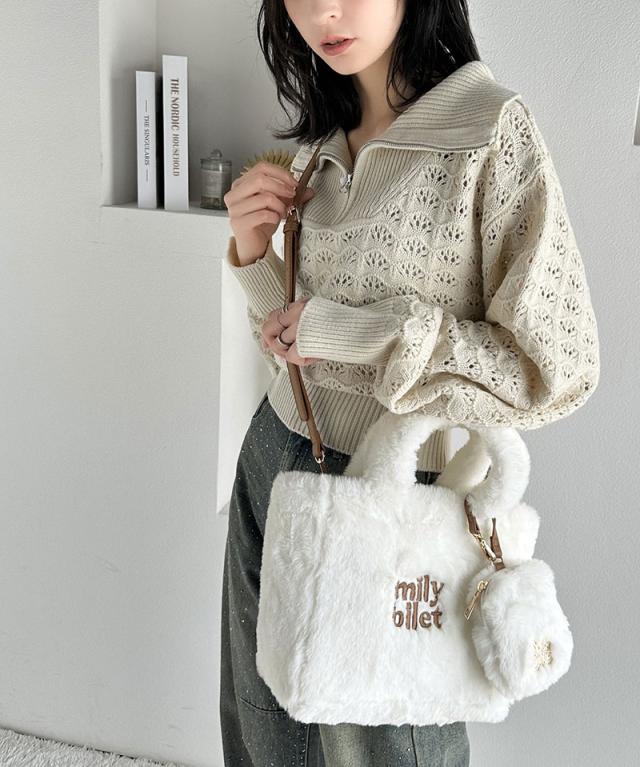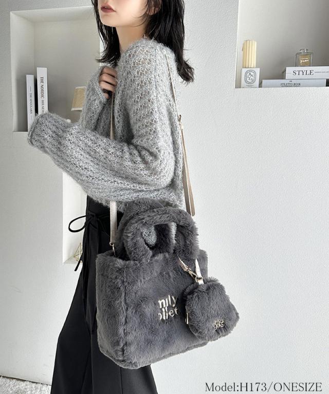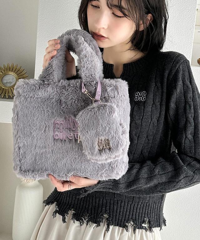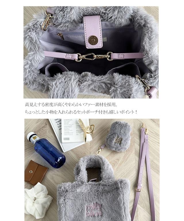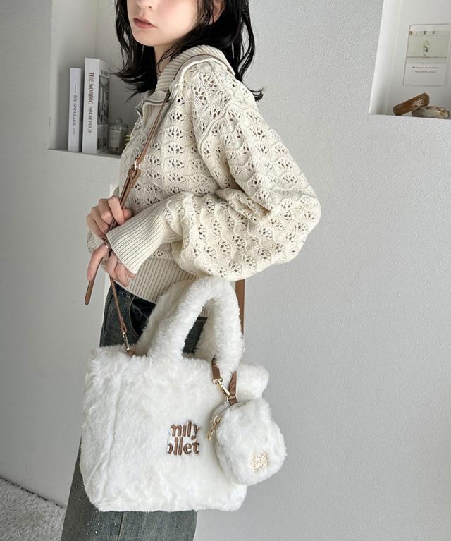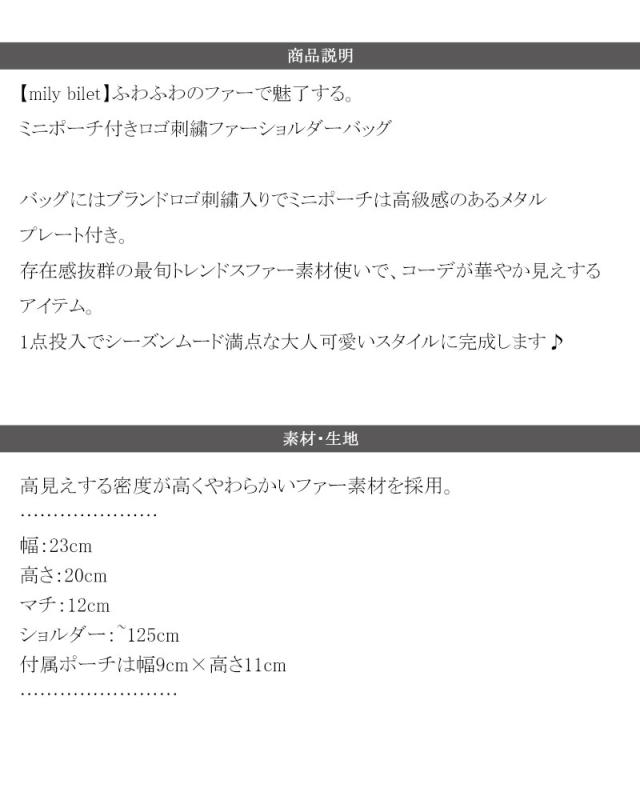 クラシカルエルフ冬新作 mily bilet バッグ ショルダーバッグ レディース ミニポーチ 付き ロゴ 刺繍 ふわふわ ファーショルダーバッグ ショルダー 紐 ポーチ 取り外し 可能 大きいサイズ 2024aw mi1159036