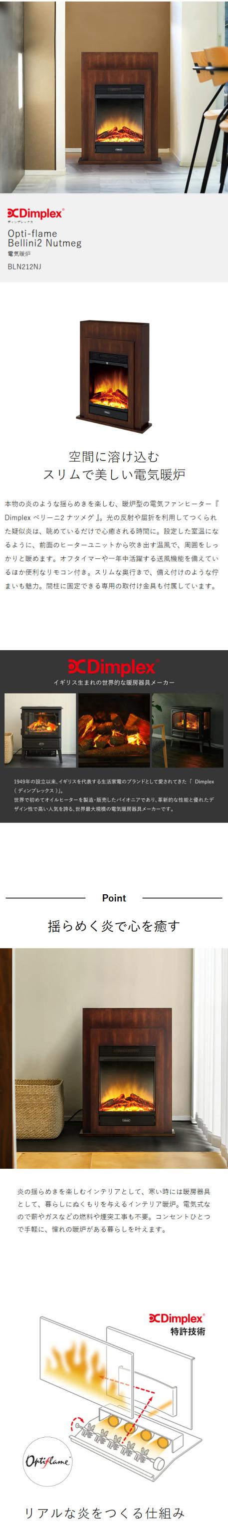[ Dimplex Opti-flame Bellini Nutmeg ]ディンプレックス 電気ヒーター ファンヒーター 暖炉型 電気暖炉 オプティフレーム ベリーニ 木目 ナツメグ 電気ストーブ 静音 送風機能 暖房 インテリア スリム ライト 疑似炎 BLN212NJ