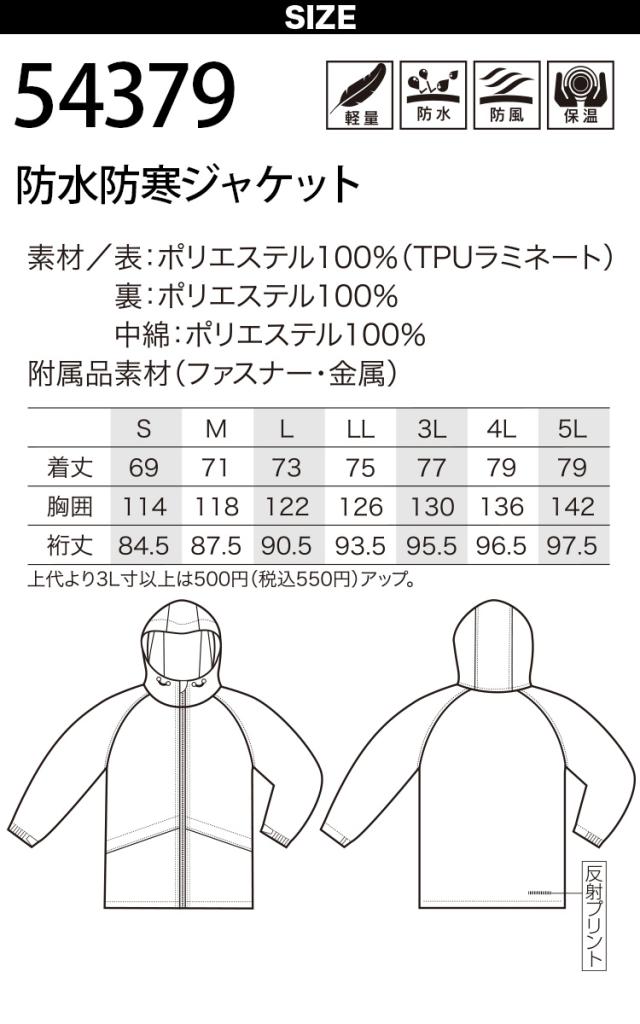 クロダルマ KURODARUMA 54379 防水防寒ジャケット ストレッチ 防水 防風 軽量 裏地アルミ加工 男女兼用 企業 法人 工場 外作業 ワークユニフォーム 土木 工事 現場 S~5L メンズ ユニセックス 作業服 作業着