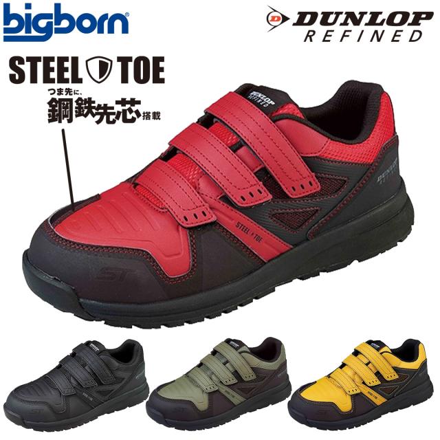 ビッグボーン bigborn ダンロップリファインド DS0202 セーフティシューズ マジックテープ 耐油 耐滑性 鋼鉄先芯搭載 軽量設計 高輝度反射材 すべりにくい 安全靴 企業 法人 工場 ワークシューズ 工事 現場 24~30 メンズ