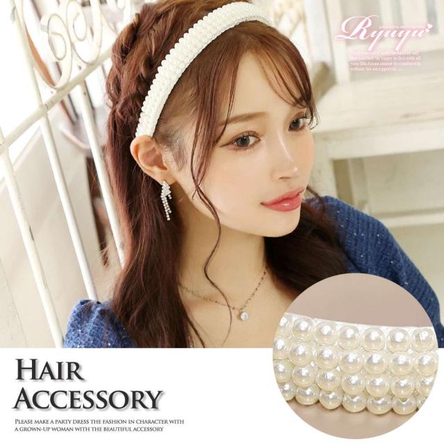 ☆パールがあしらわれたアクセサリーで、上品かつフォーマルな印象に仕上げます。