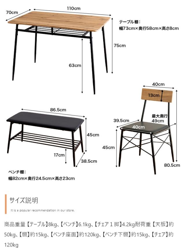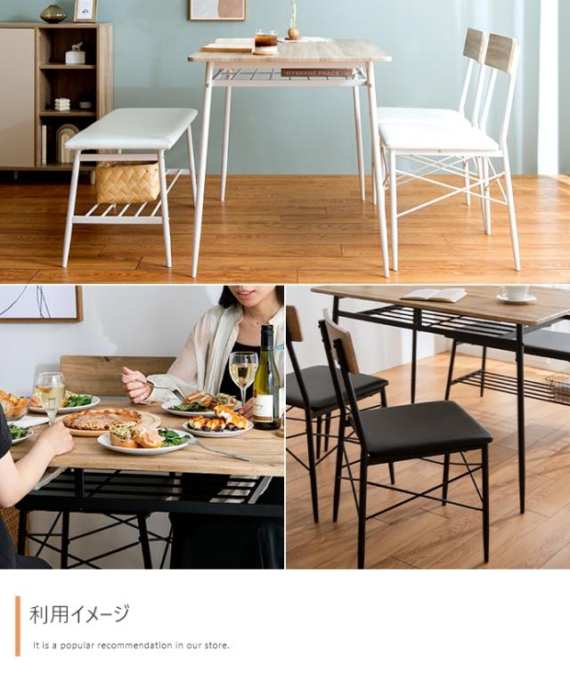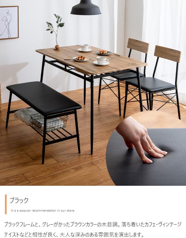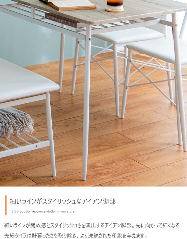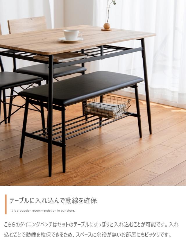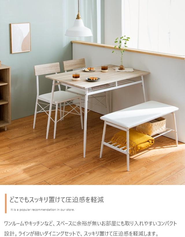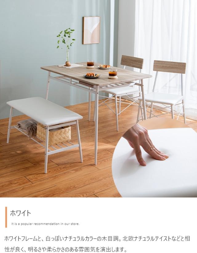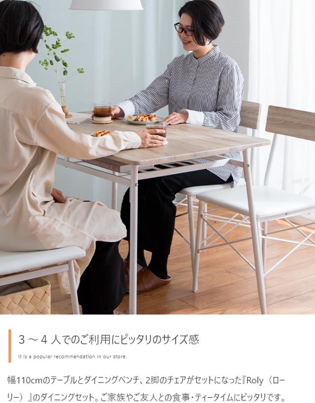 ダイニングテーブルセット 4人掛け 4点セット 長方形 棚付き ダイニングテーブル ダイニングチェア ダイニングベンチ 木製 おしゃれ シンプル コンパクト ナチュラル 北欧 Roly(ローリー) 幅110cm 2色対応