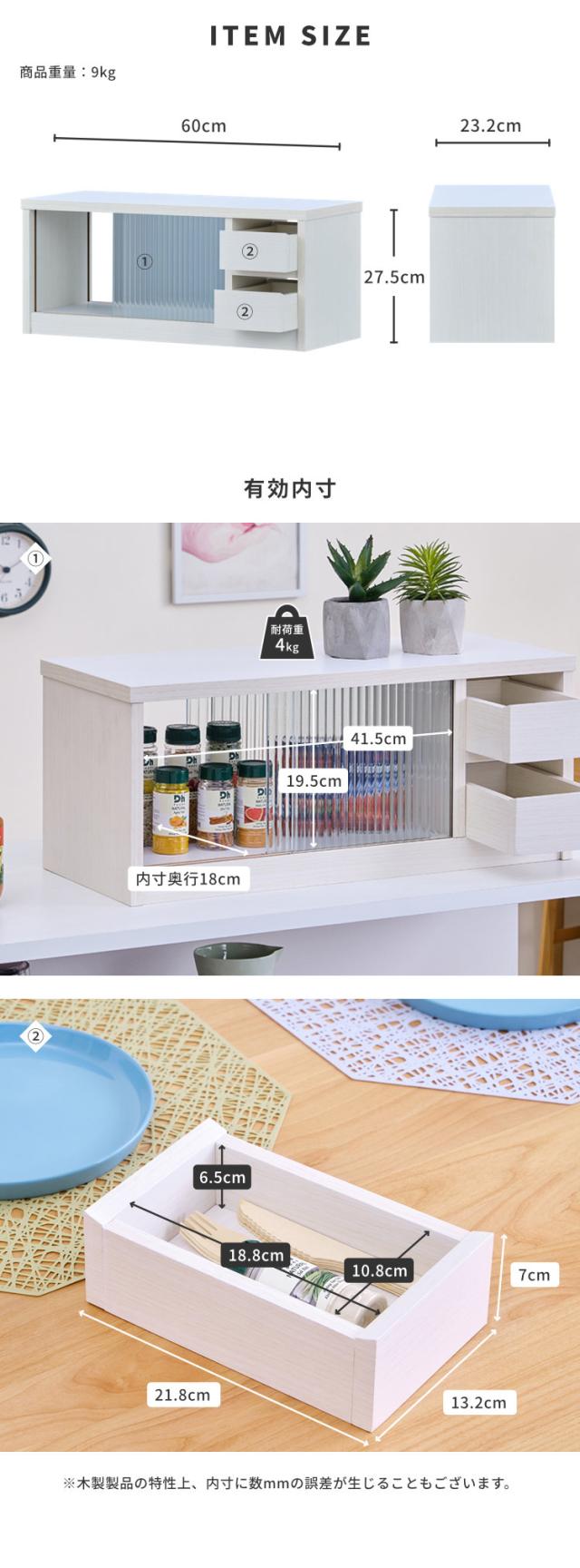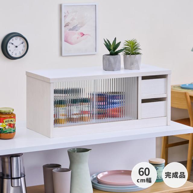 【1/13限定!ポイント10倍!】 カウンター上収納 両面開閉 ラック キッチンラック 60cm スパイスラック 収納家具 調味料ラック キッチン収納 カウンター上 薄型 カトラリー 調味料 スリム 引き戸 引き出し 完成品 CASETTA ISSEIKI