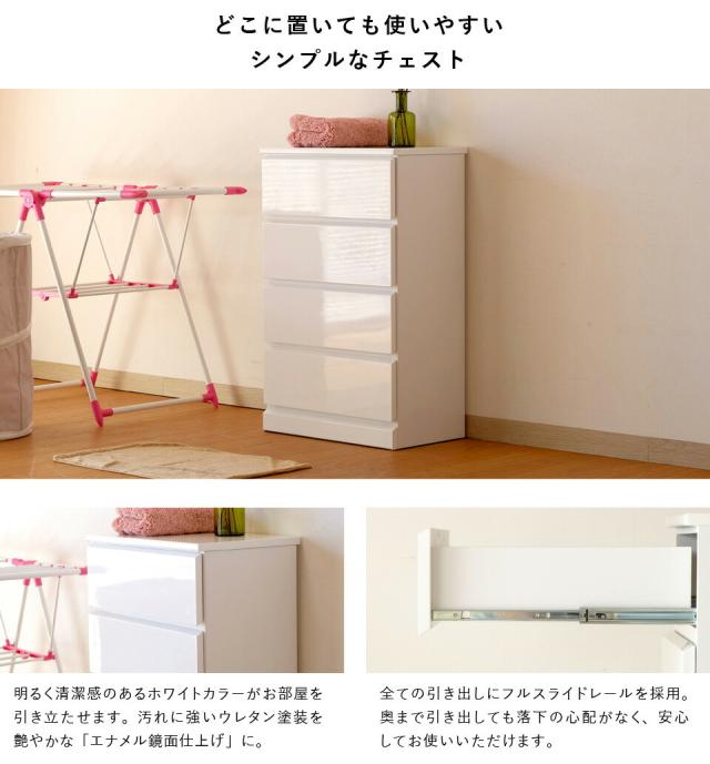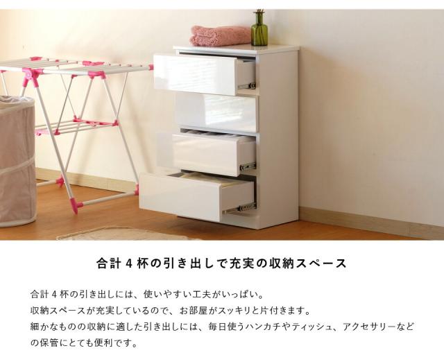 【3/13から期間限定価格!】 チェスト 4段 完成品 ランドリーチェスト スリム 幅50 奥行30 タンス ランドリー収納 洗面所 バスルーム サニタリー 衣類 タオル 洋服 収納 引き出し 薄型 隙間 白 ホワイト 鏡面 シンプル モダン SOFEE ISSEIKI