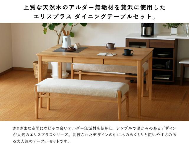 【セット商品】ダイニングテーブルセット ベンチ 4人掛け 幅135 ダイニングセット ダイニング 食卓 北欧 ナチュラル シンプル 椅子 テーブル チェア アルダー材 オイル仕上げ 品質保証 ISSEIKI ERISPLUS