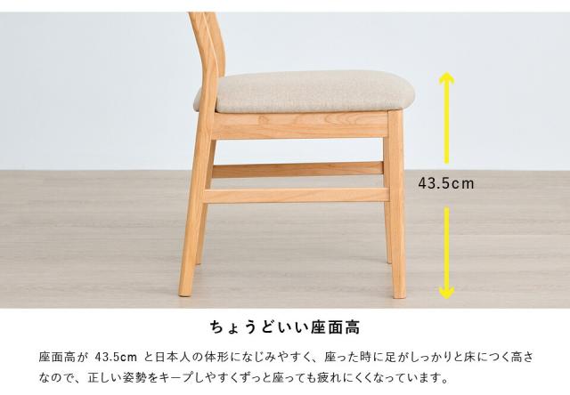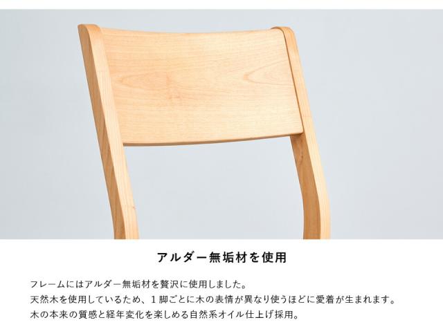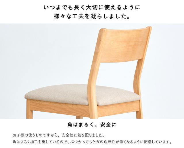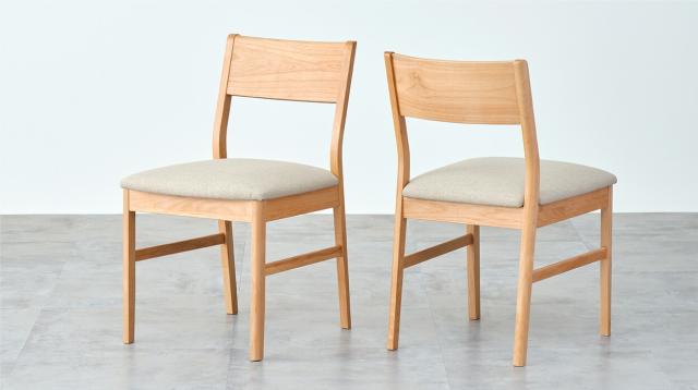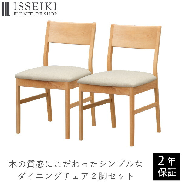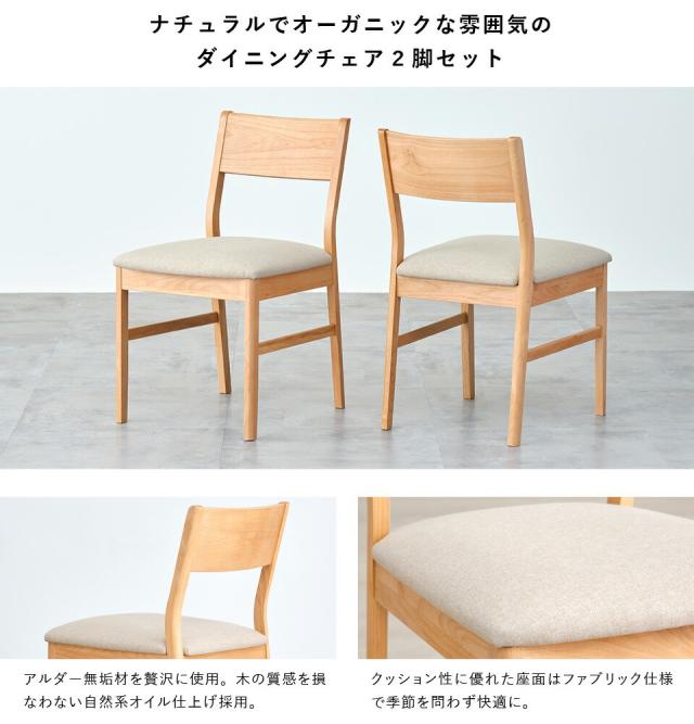 天然木の風合が嬉しいダイニングチェア。2脚セット。座面は上品なベージュのファブリック。ナチュラルな雰囲気が可愛い。アルダー無垢材使用の食卓椅子。【一生紀オリジナル】