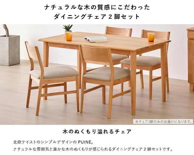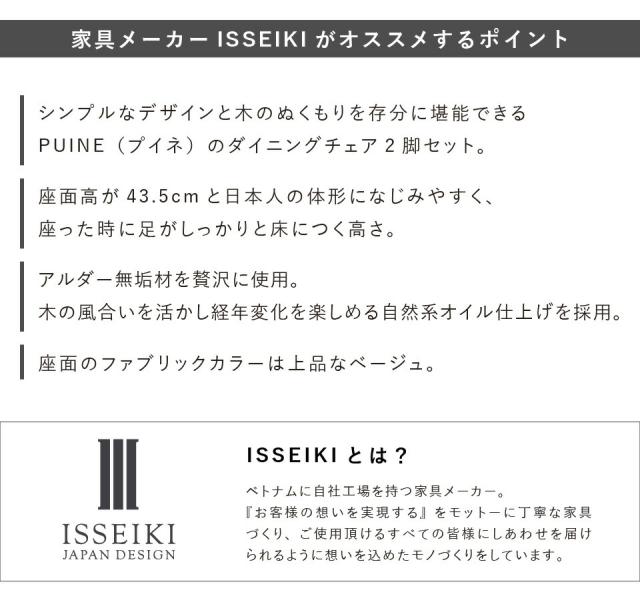 【セット商品】 ダイニングチェア チェア2脚セット 食卓椅子 1人掛け 背もたれ 北欧 幅42cm ダイニング キッチン シンプル ナチュラル ファブリック アルダー 木製 完成品 ベージュ 品質保証 ISSEIKI PUINE