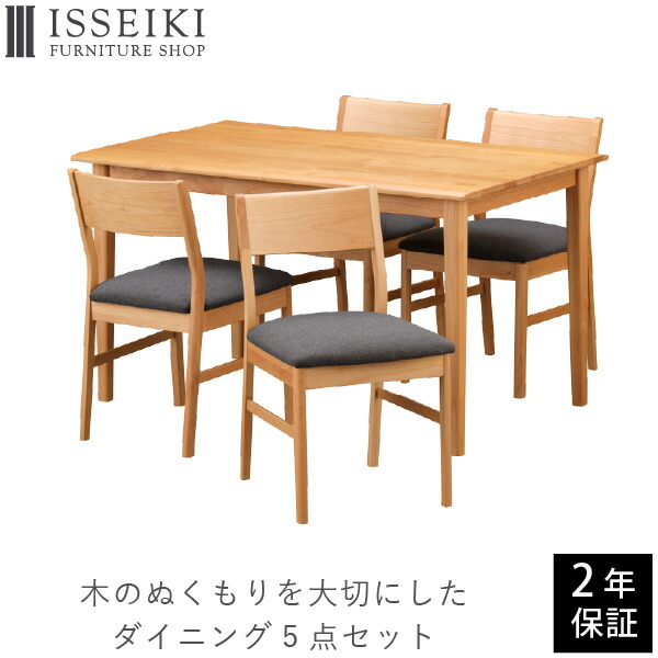 【セット商品】 ダイニングセット 北欧 ダイニングテーブルセット 4人掛け 幅125 長方形 チェア 椅子 5点セット 食卓 アルダー材 天板ウレタン塗装 オイル仕上げ ナチュラル 品質保証 グレー ISSEIKI PUINE