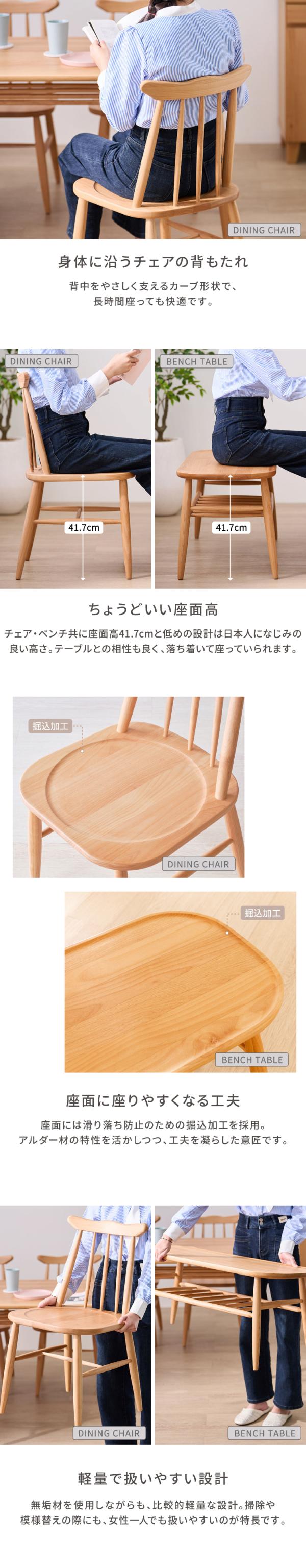 座面:板座:アルダー無垢材