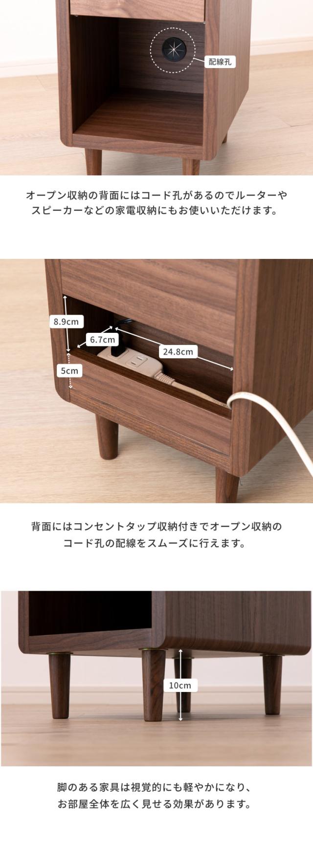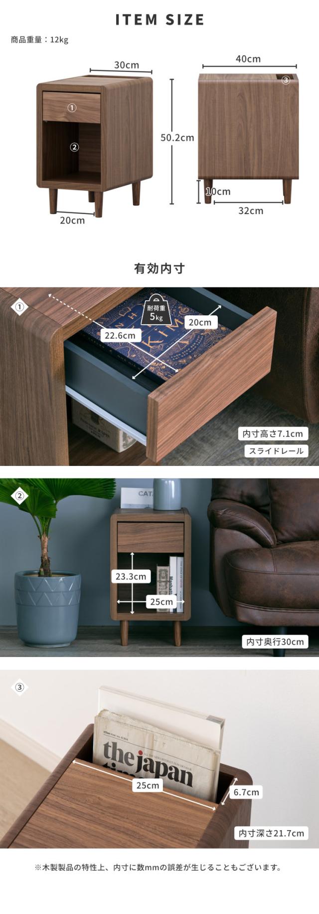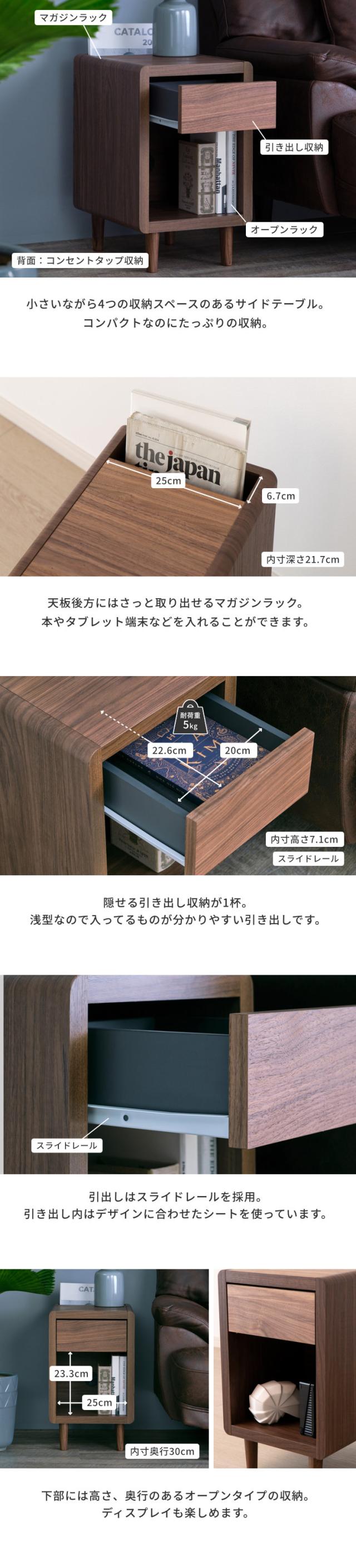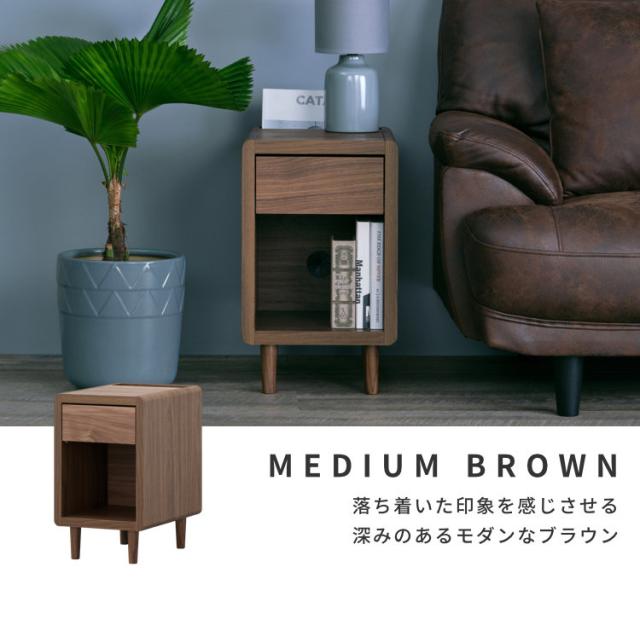 サイドテーブルウォールナット。オススメのマガジンラック付き北欧モダンのテーブル。シンプルにおしゃれで引出しの便利機能も有り。ナイトテーブル、ミニテーブル。【一生紀オリジナル】