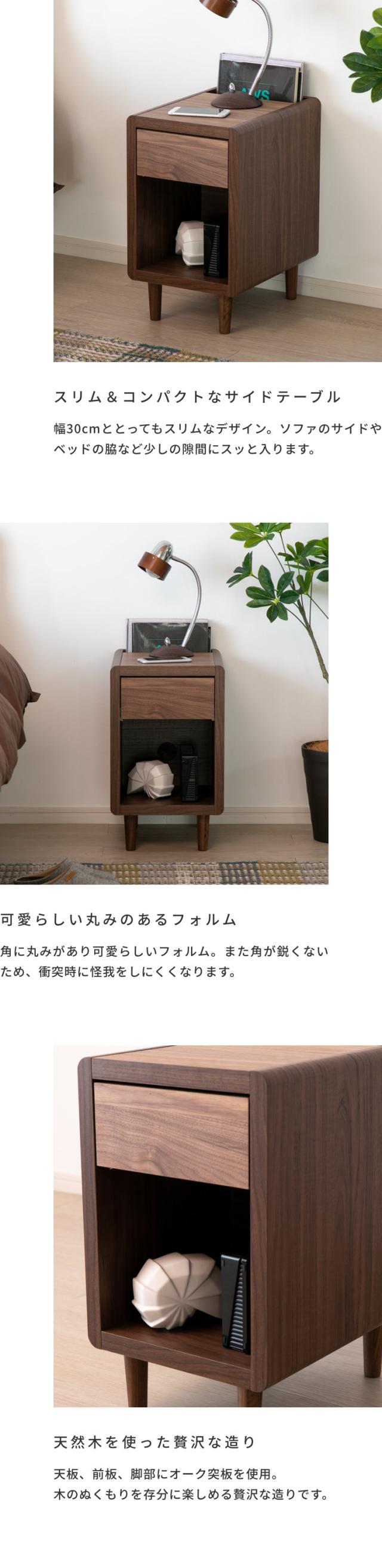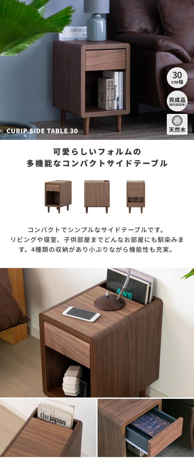 北欧 サイドテーブル ベッドサイドテーブル 幅30 おしゃれテーブル スリム ナイトテーブル 木製 マガジンラック ナチュラル テーブル かわいい 収納 ウォールナット材 品質保証 ブラウン ISSEIKI CURIP-4 SIDE TABLE 30 (WN-MBR)