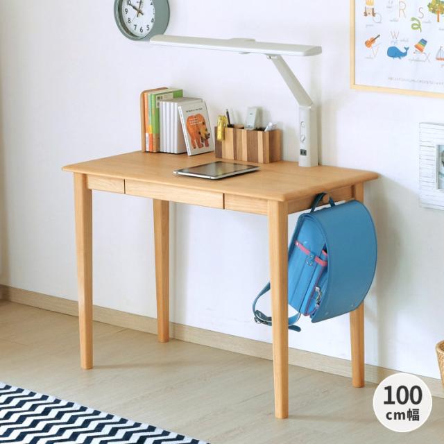 デスク 机 つくえ 学習 勉強 事務 書斎 パソコン 小さめ コンパクト フック リビング学習 幅100 100cm 木 天然木 無垢 ランドセル掛け ナチュラル 要組立品 入学祝い 進級 保証 一生紀