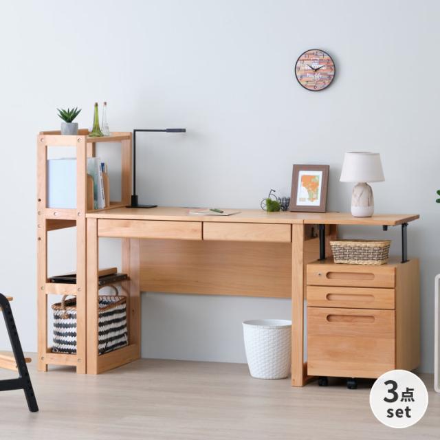 3点セット デスク 机 つくえ 学習デスク 学習机 勉強机 pcデスク サイドワゴン 脇机 本棚 シェルフ ラック 天然木 オフィス家具 おしゃれ 入学 男の子 女の子 大人 子供部屋 保証 一生紀