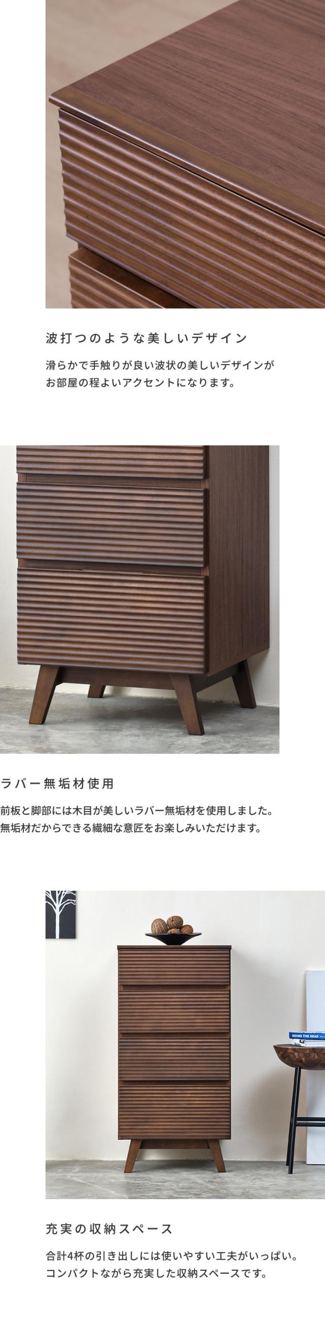 チェスト 4段 木製 完成品 スリム リビングボード サイドボード キャビネット タンス リビング 収納 棚 幅45 ブラウン 茶 木目調 シンプル モダン おしゃれ コンパクト 衣類 小物 WAVE CHEST 45-4 ISSEIKI