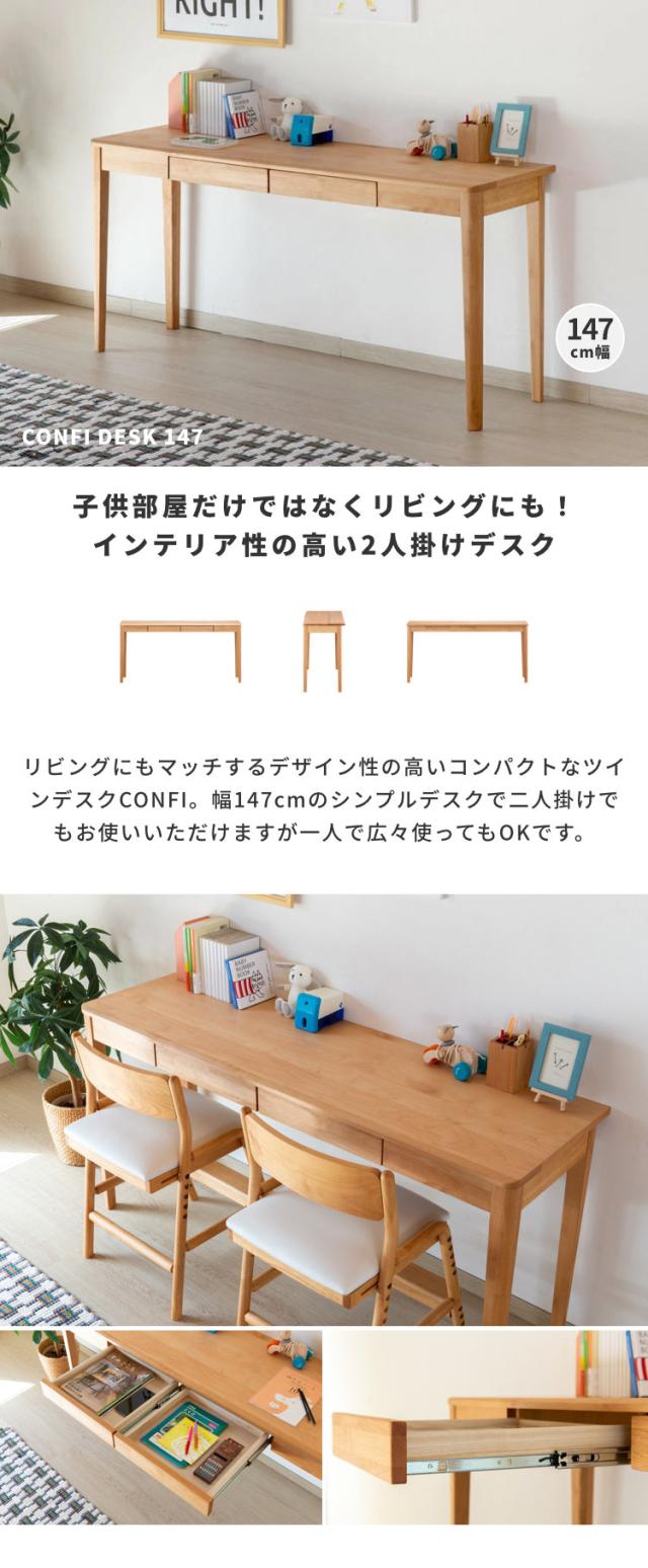 ツインデスク 学習デスク 学習机 2人用 勉強机 机 つくえ pcデスク 書斎机 木製 引き出し ワイド シンプル 大人 子供 大学生 男の子 女の子 北欧 シンプル ナチュラル おしゃれ おすすめ 人気 CONFI NA ISSEIKI
