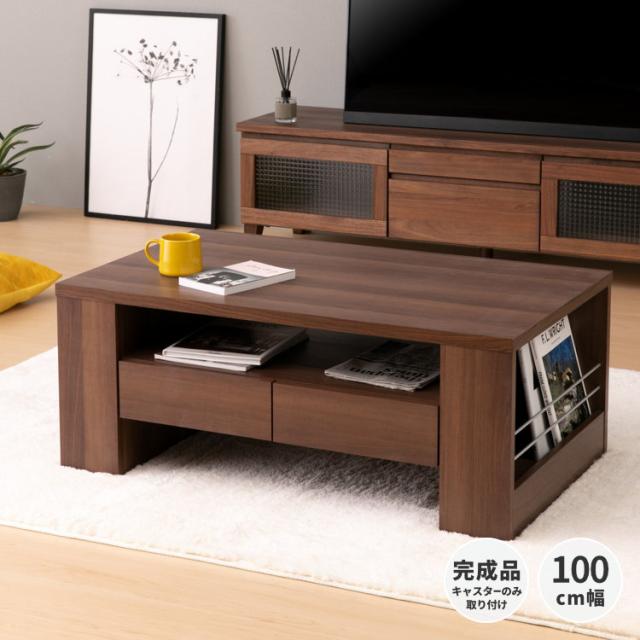 ローテーブル おしゃれ 引き出し付き 収納 大きめ センターテーブル 完成品 テーブル リビングテーブル ソファー コーヒーテーブル 北欧 モダン 卓 幅100 ウォールナット柄シート 品質保証 ISSEIKI HORNET