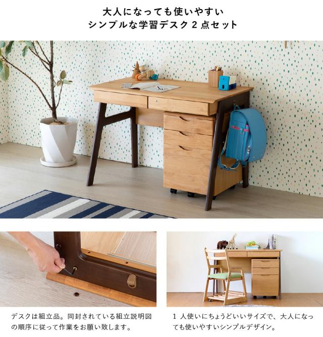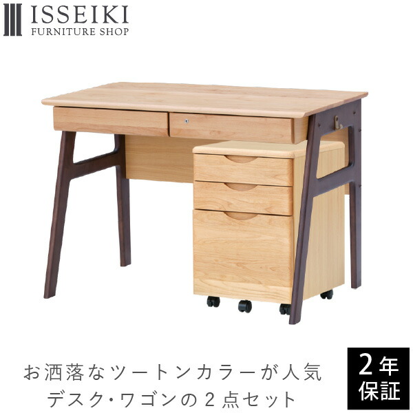 2点セット デスク 机 つくえ 学習デスク 学習机 書斎デスク パソコンデスク ワゴン サイドチェスト キャスター 鍵 天然木 入学 進級 大学生 リモート 在宅 保証 オリジナル 一生紀