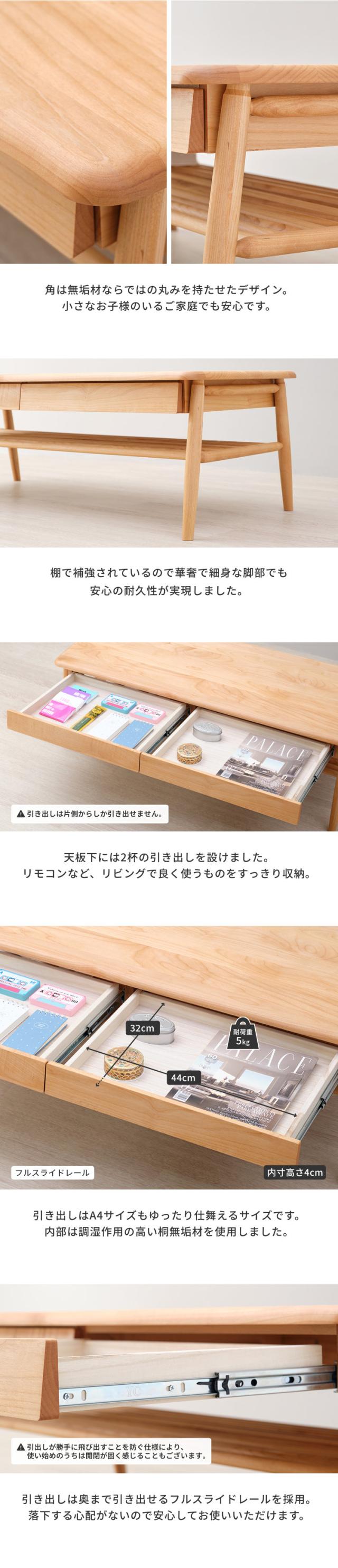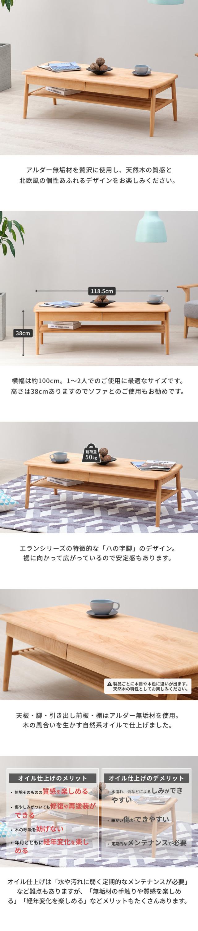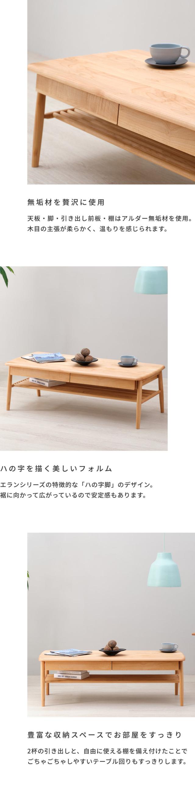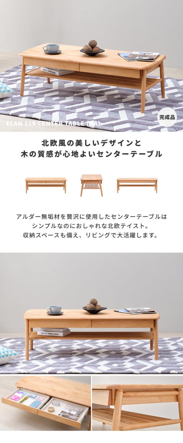 ローテーブル おしゃれ 引き出し付き 収納 北欧 センターテーブル テーブル 幅119 木製 リビングテーブル ソファテーブル 座卓 机 かわいい シンプル ナチュラル アルダー 桐 オイル仕上げ 品質保証 ISSEIKI ELAN