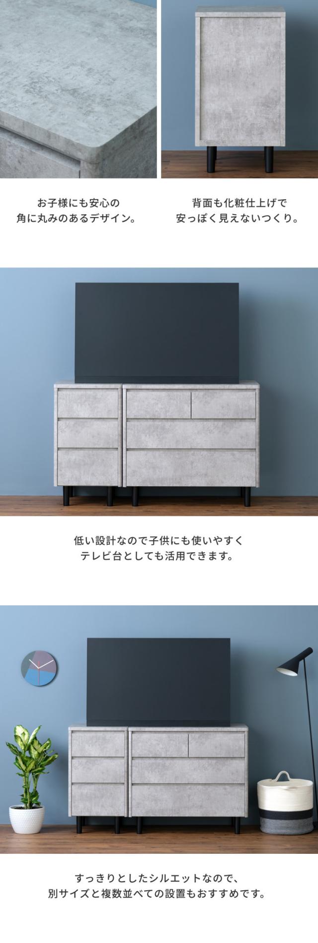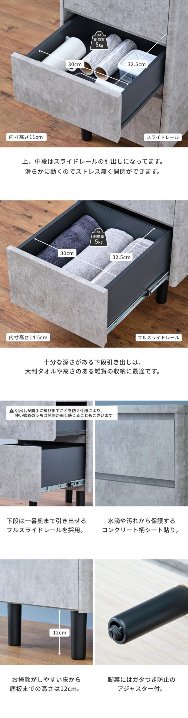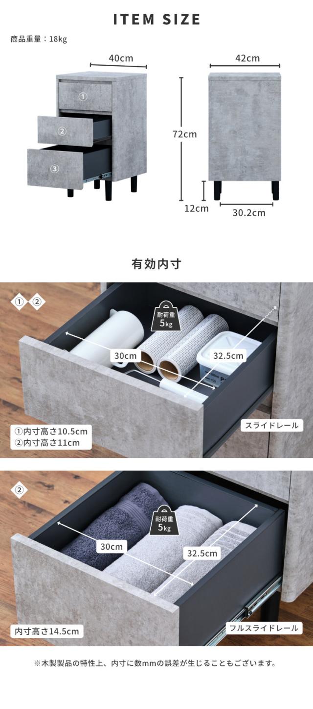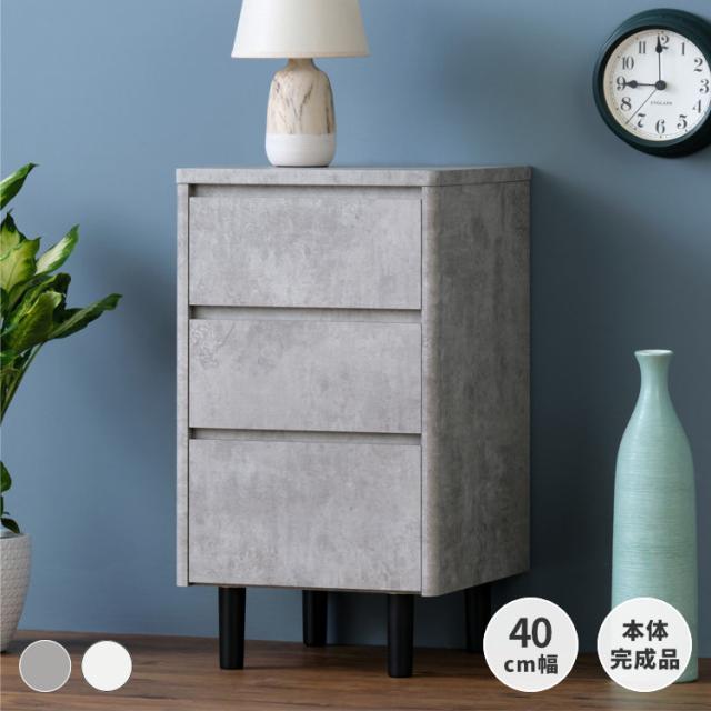 チェスト 幅40cm 3段 脚付き コンクリート柄 グレー モダン シック シンプル サイドチェスト ローチェスト サイドボード リビング収納 衣類収納 寝室 玄関 たんす 箪笥 引出し 木製