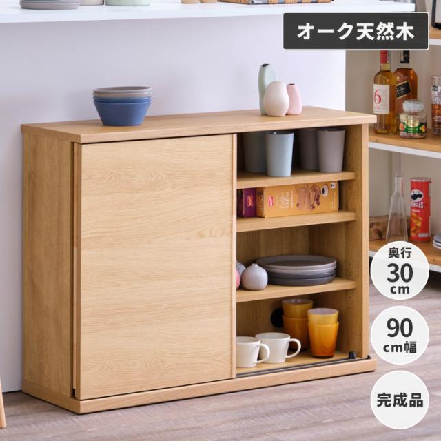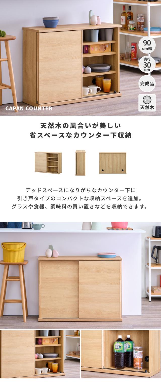 【4/3限定!ポイント10倍!】 カウンター下収納 幅90cm 奥行30cm 高さ70cm 省スペース コンパクト スリム 引き戸 扉 キッチン収納 デッドスペース 壁面収納風 オーク ナチュラル 北欧 シンプル おしゃれ CAPAN ISSEIKI