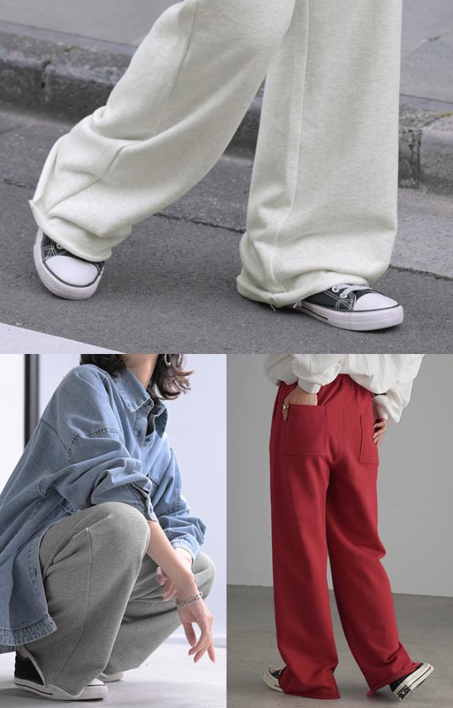 暖かくて着心地抜群の裏毛イージーワイドパンツです。
