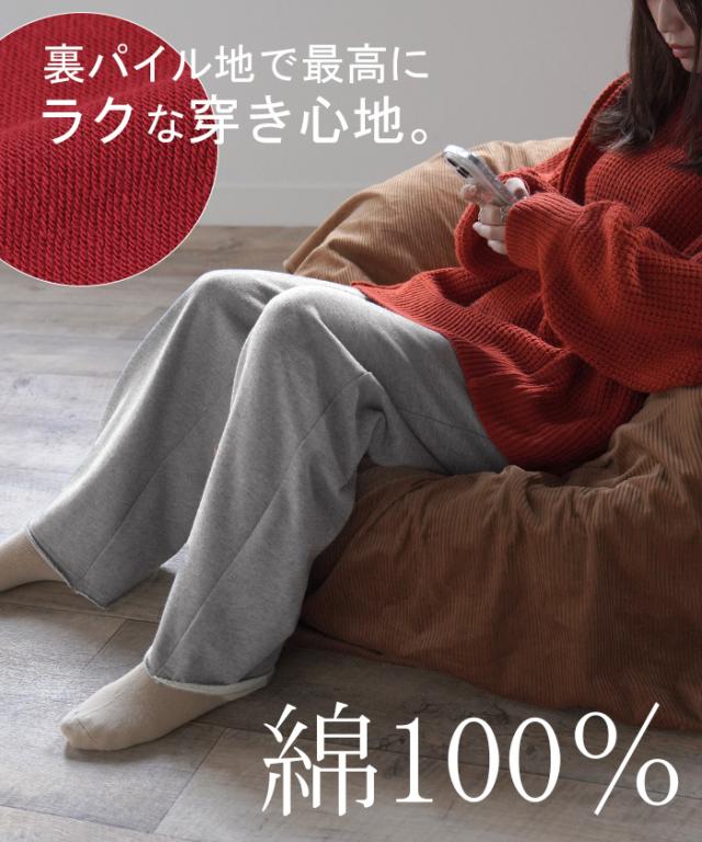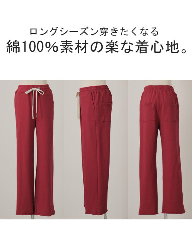 パンツ 綿100% スウェットパンツ レディース 厚手 スウェット ワイド ワイドパンツ ロング ロングパンツ 長い 体型カバー ボトムス ボトム ストレート ズボン ジャージ ゆったり ハイウエスト ストレッチ 大きいサイズ ゴム 黒 赤 秋 冬 HUG.U 秋新作