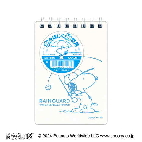 スヌーピー レインガードメモ A7 ホワイト 40枚 横罫 Wリング 撥水加工 キッチン アウトドア スポーツ 防災 日本ノート 送料無料
