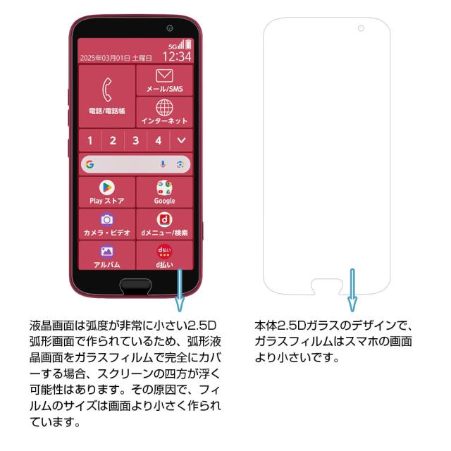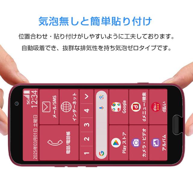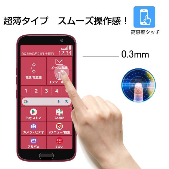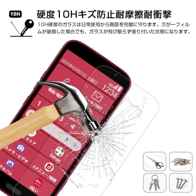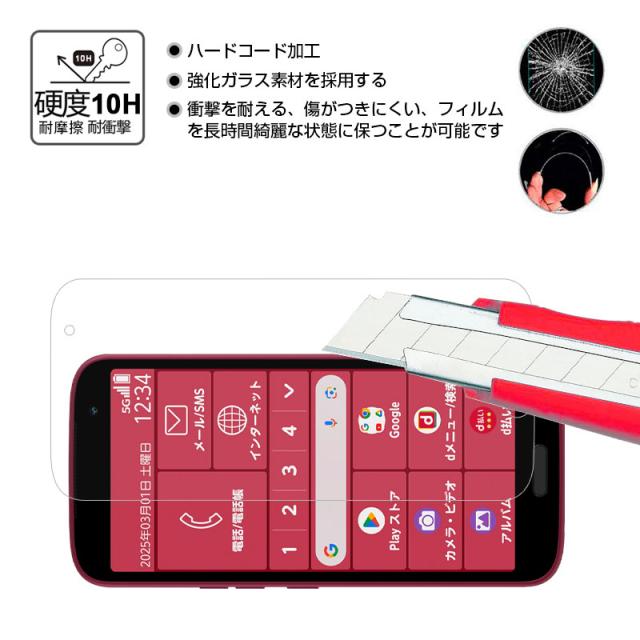 らくらくスマートフォン F-53E 強化ガラス フィルム クリア仕様 スマートフォン 2.5D 全面保護 Android 貼り付け簡単 液晶画面保護 0.3mm 薄型 硬度10H ぴったり 疎油 撥水 指紋防止