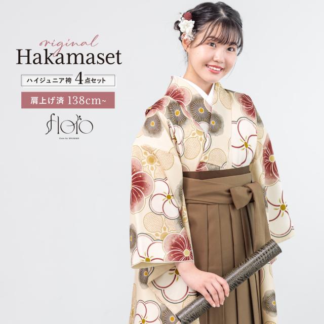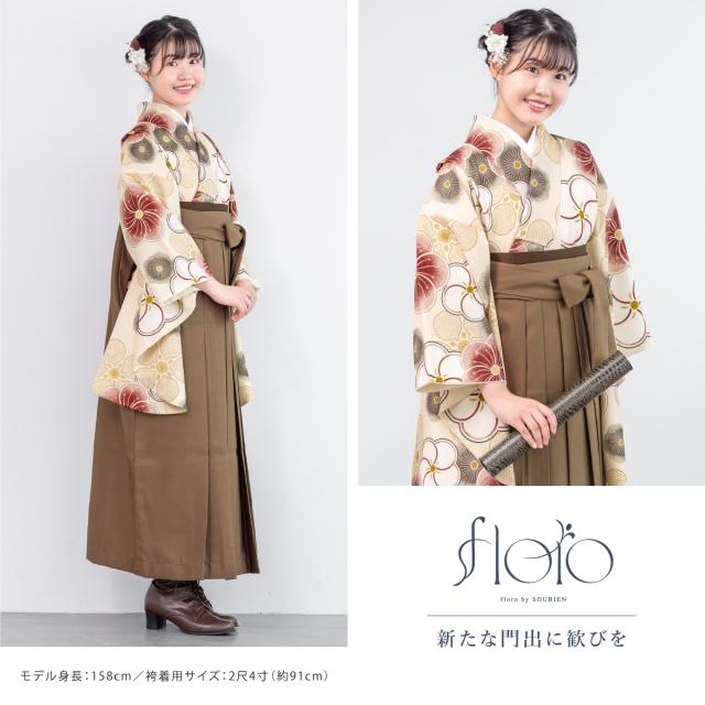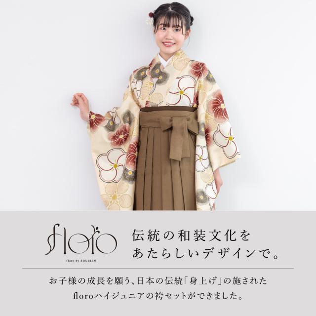 袴セット 卒業式 小学生 女の子 ジュニア 創美苑オリジナル floro ベージュ 赤 白 茶色 花 販売 13歳 十三参り ハーフ成人式 送料無料