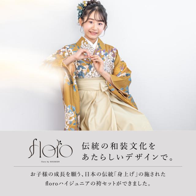 袴セット 卒業式 小学生 女の子 ジュニア 創美苑オリジナル floro 黄色 白 アイボリー 花 販売 13歳 十三参り ハーフ成人式 送料無料