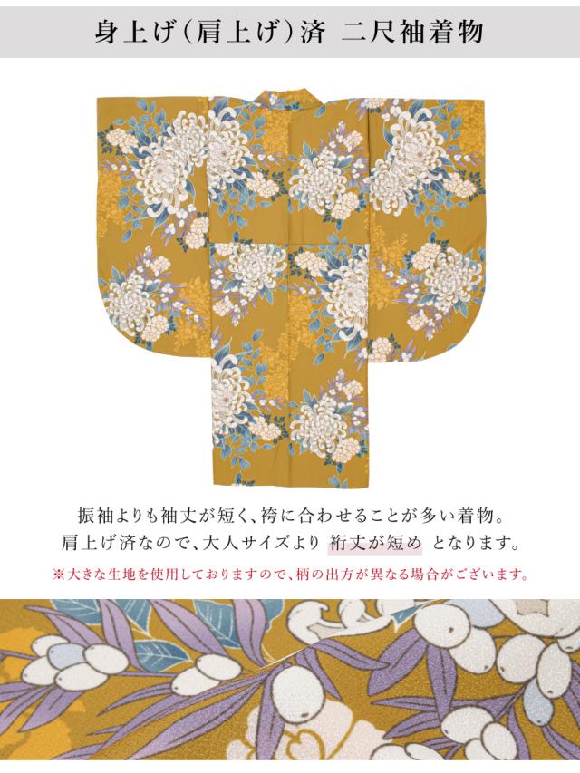 ※着物の柄部分は大きな生地を使用して作られておりますので、色や柄の出方、模様の配置等が画像と異なる場合がございます。