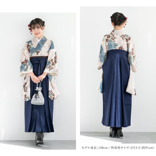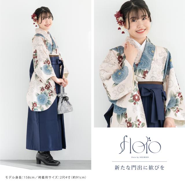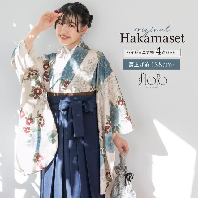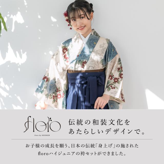 袴セット 卒業式 小学生 女の子 ジュニア floro クリーム色 白 青 ネイビー 紺 花 販売 13歳 和装 着物セット 購入 送料無料
