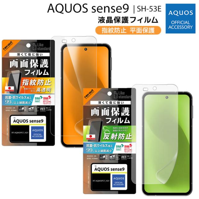 AQUOSsense9 SH-53E PETフィルム 平面保護 指紋防止 光沢 反射防止 抗菌 抗ウイルス 液晶保護フィルム 画面保護 メール便送料無料