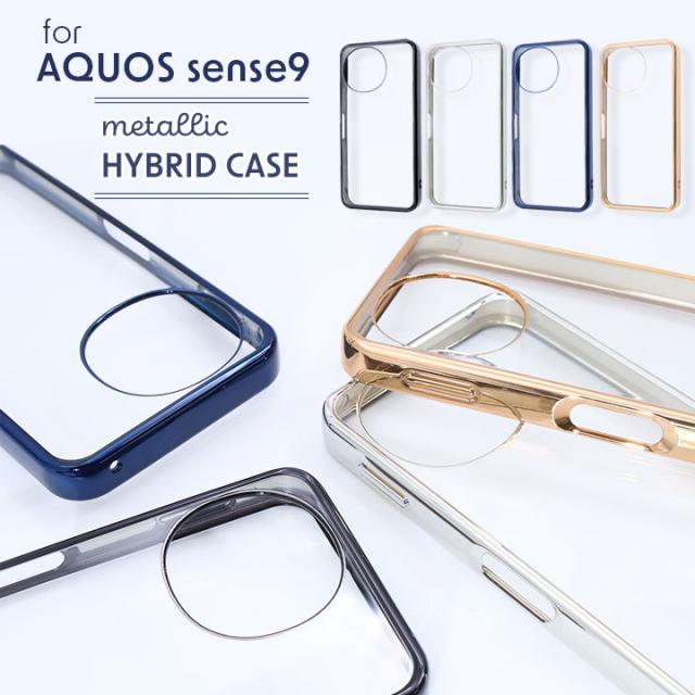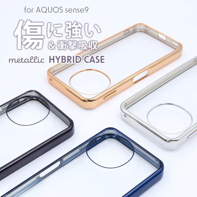 AQUOSsense9 SH-53E衝撃吸収 バンパー メタリック ハイブリッドケース ブラック シルバー ブルー ピンクゴールド ラベンダー ライトブルー メール便送料無料