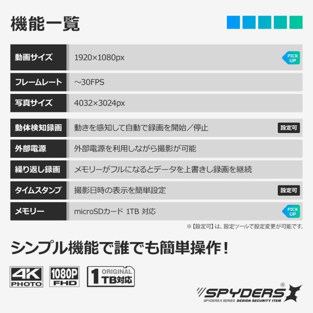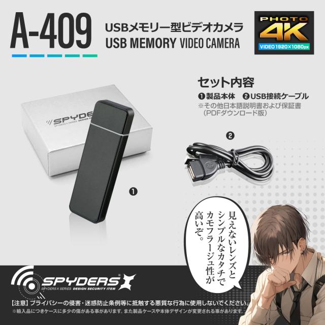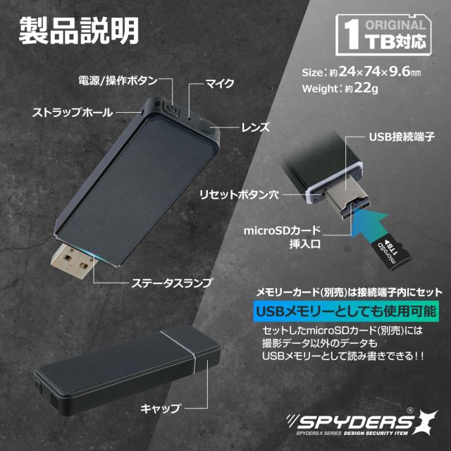 スパイダーズX スパイカメラ 1080P USBメモリー型カメラ 小型カメラ [A-409] Photo4K 防犯カメラ 動体検知 128GB対応
