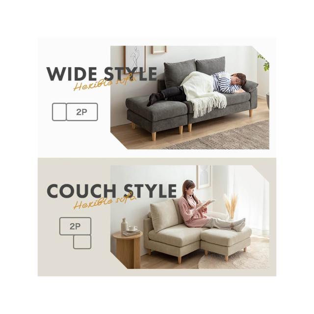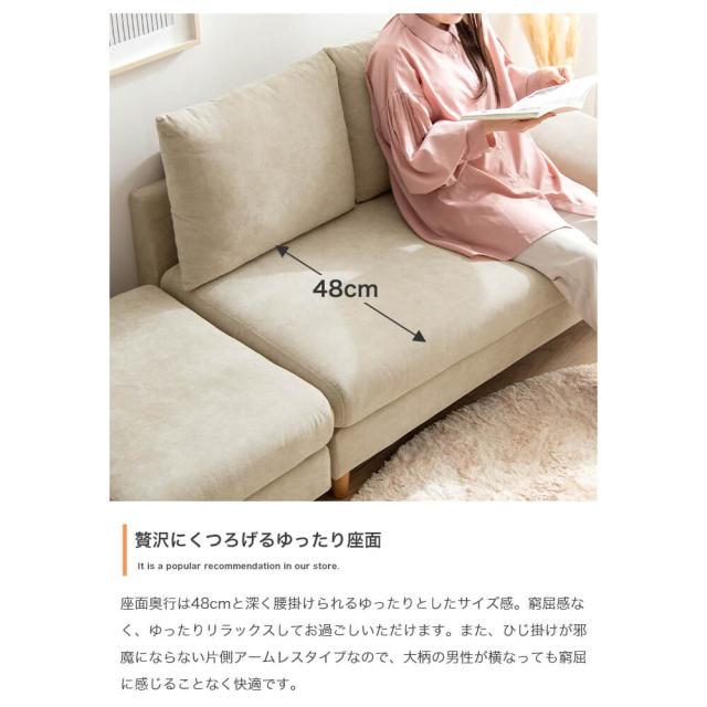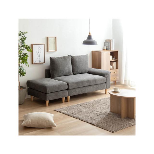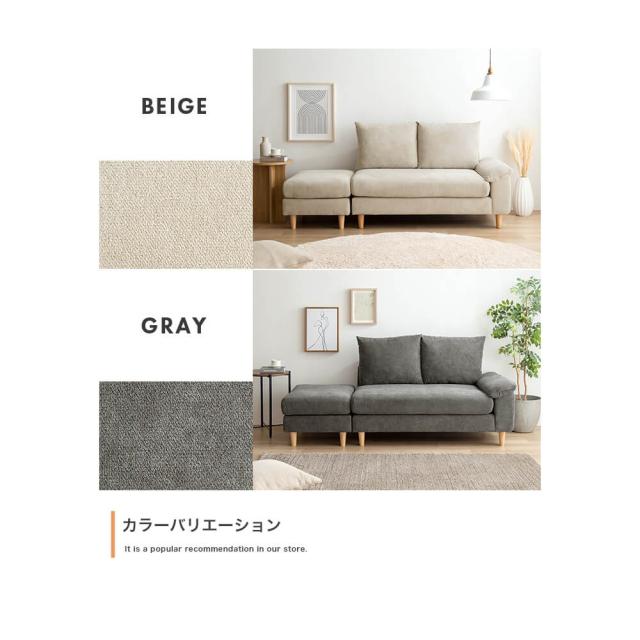 2人掛けカウチソファ 2点セット カウチソファ オットマン アームレスト 2人掛け ソファ 2人用 ベージュ グレー