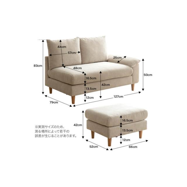 【ソファ】幅 127cm × 奥行 79cm × 高さ 83cm (座面高: 42cm )【オットマン】幅52cm×66cm×高さ42cm